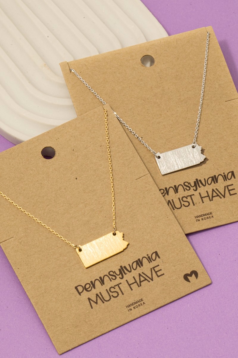 • This trending necklace brings a unique pennsylvania state pendant necklace style. Immerse yourself in the world of understated glamour as this trending necklace effortlessly exudes timeless appeal.
