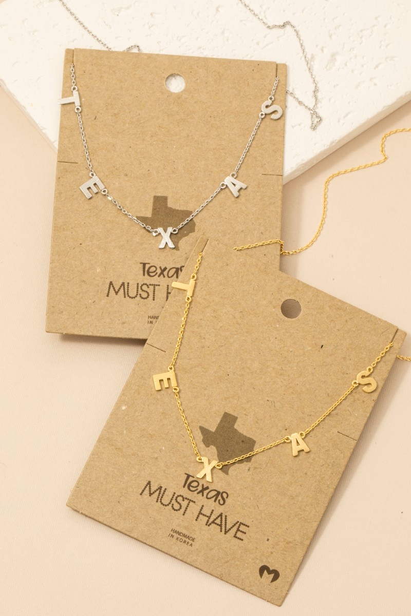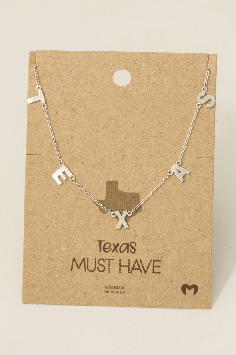• This trending necklace brings a stunning texas print station charm necklace style. Experience a burst of creativity in accessorizing as this piece effortlessly sets the tone for your unique style.