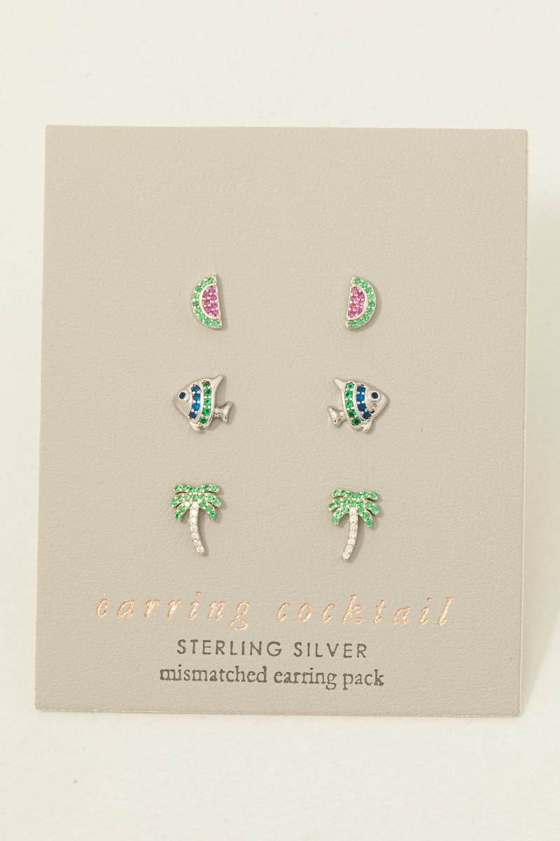 - This pair of stud earrings introduces a unique sterling silver cubic zirconia pave mixed set style. Delight in the intricate details that make this pair of stud earrings an essential element in expressing your fashion identity.