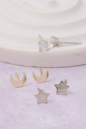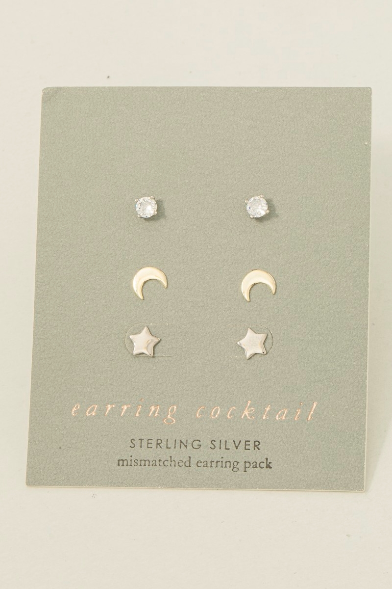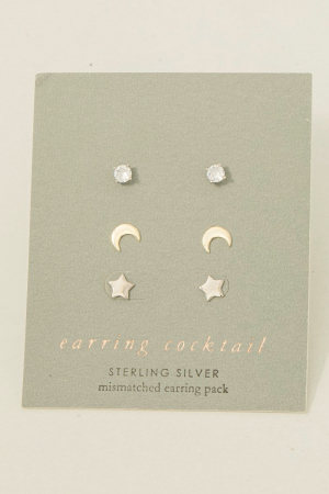 - This pair of stud earrings showcases a timeless sterling silver star jewel set style. Revel in the intricate design that effortlessly distinguishes this pair of stud earrings, making it a statement piece.