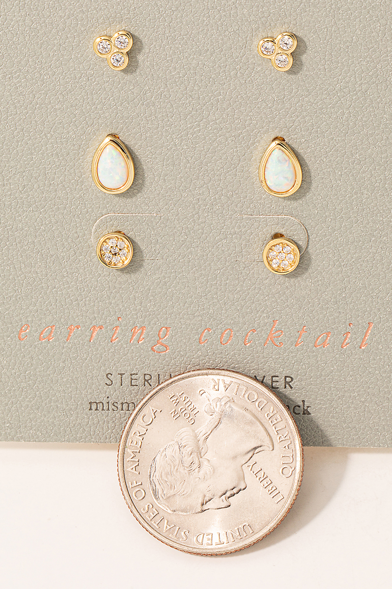 Sterling Silver Cz Pave Mixed Stud Earrings Set