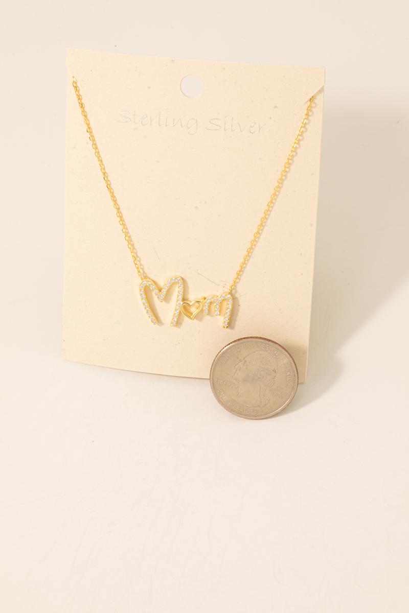 • This necklace displays a fashionable sterling silver cubic zirconia pave mom pendant style. Elevate your ensemble with this chic, timeless necklace.