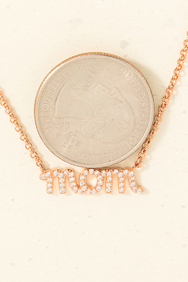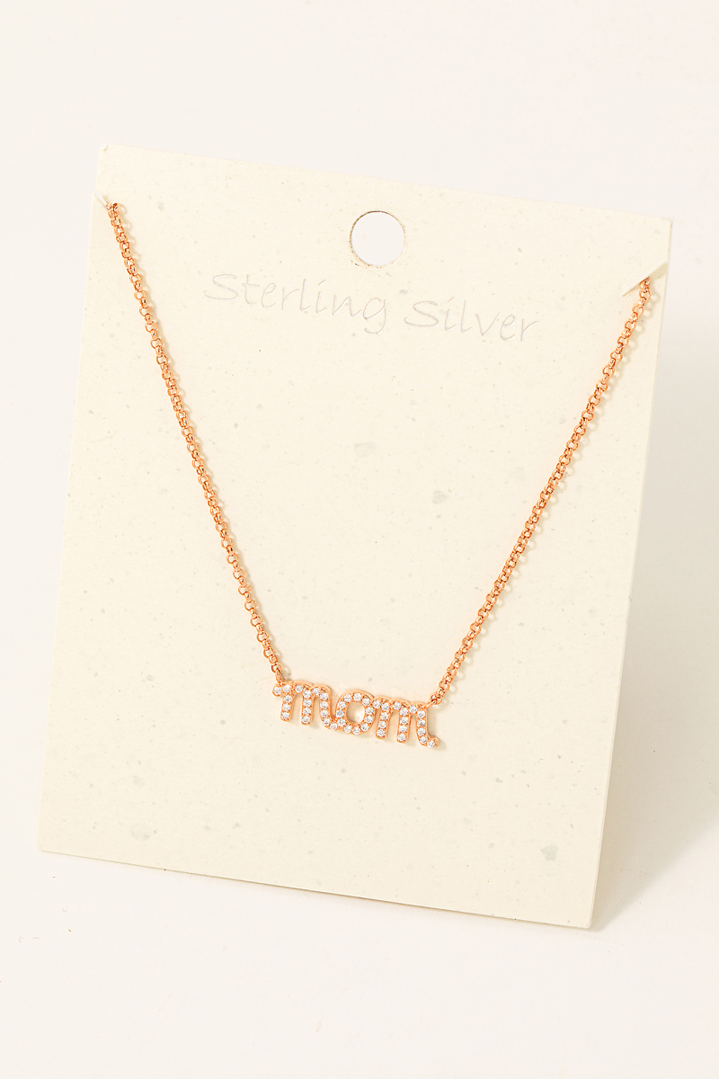 Sterling Silver Cz Pave Mom Pendant Necklace