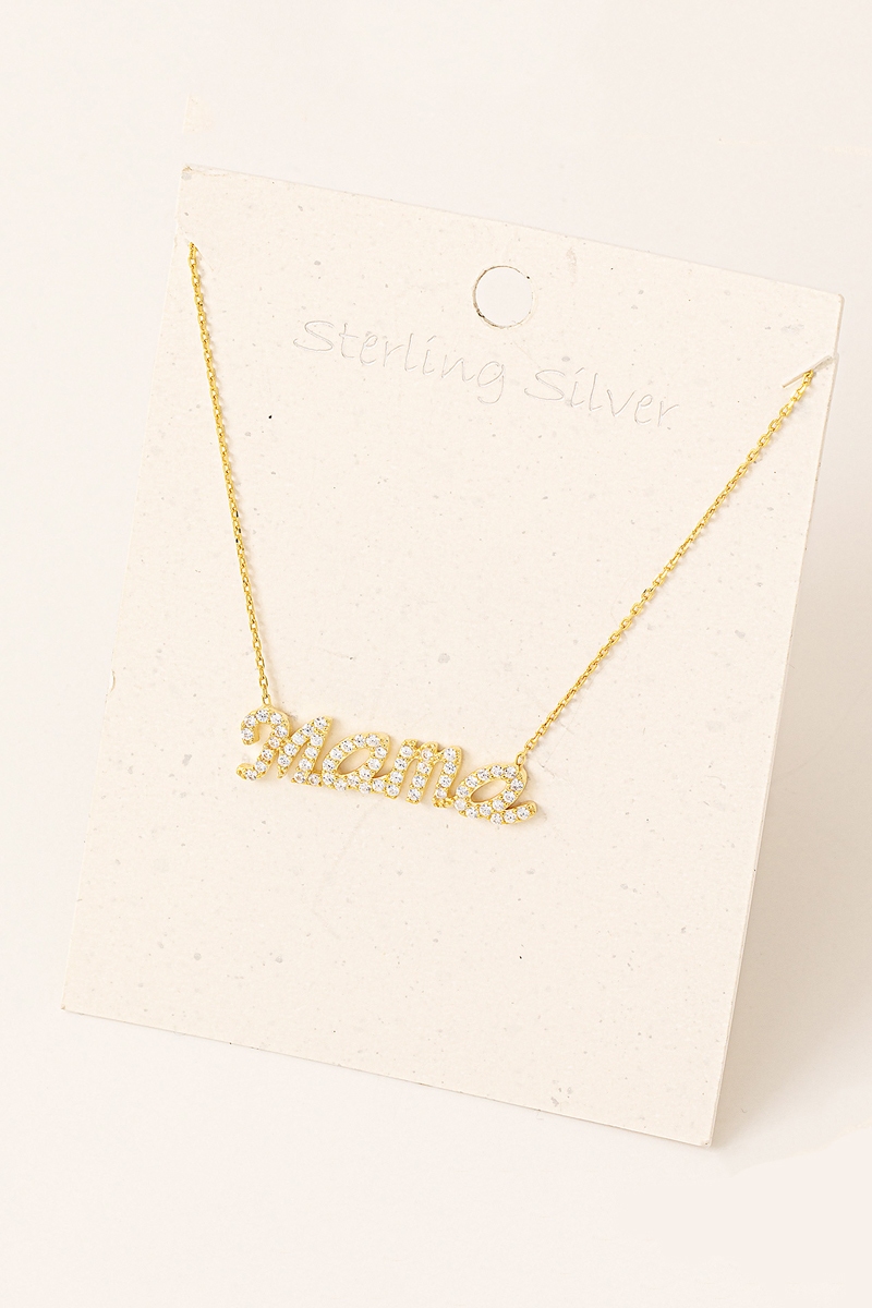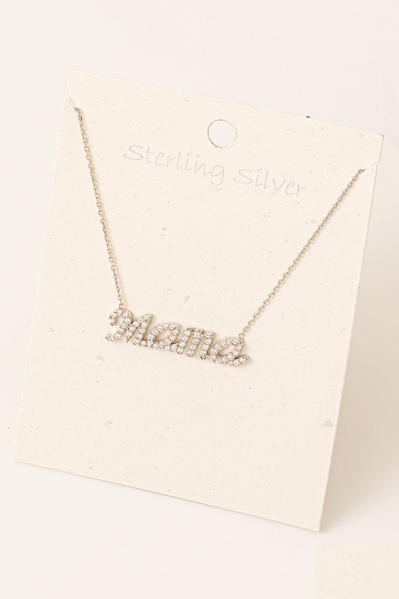 Sterling Silver Cz Pave Mom Pendant Necklace
