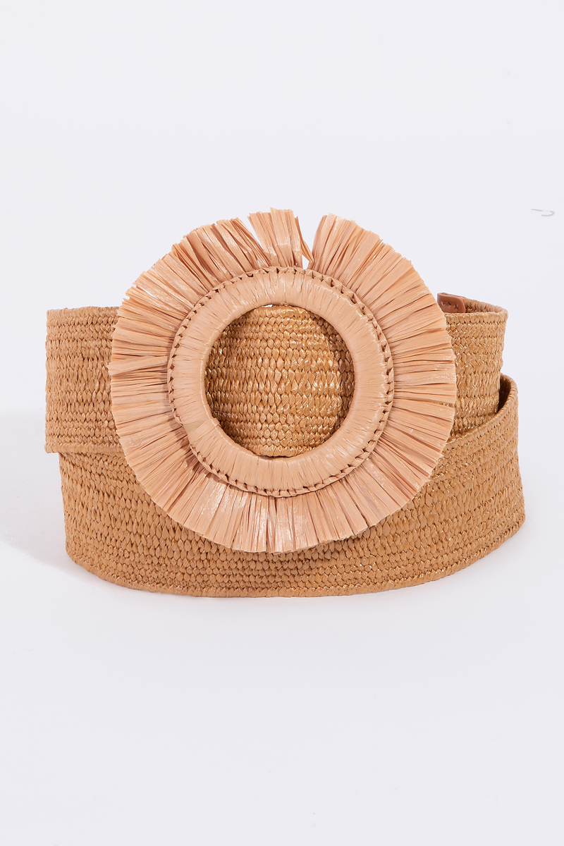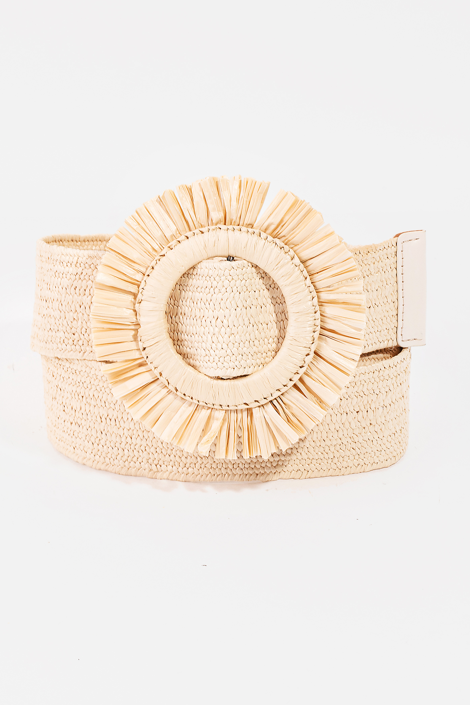 - This belt brings a unique circle buckle fringe straw style. Embark on a journey of sartorial refinement as this belt effortlessly complements your fashion sense.