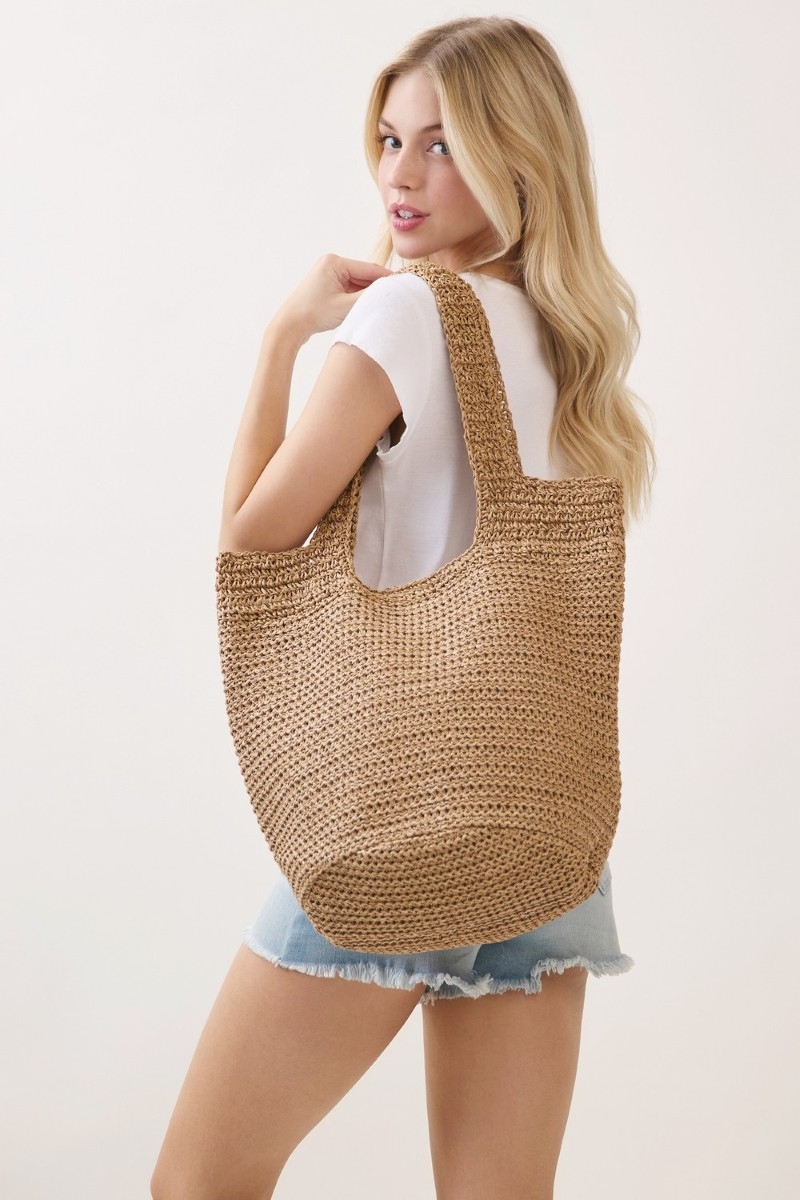 - This tote bag displays a fashionable handmade round bottom woven straw style. Witness the perfect fusion of style and functionality as this tote bag effortlessly complements your lifestyle.