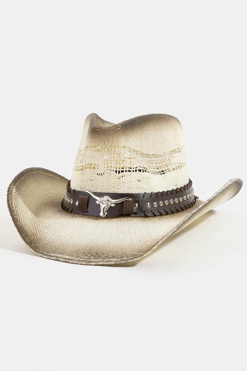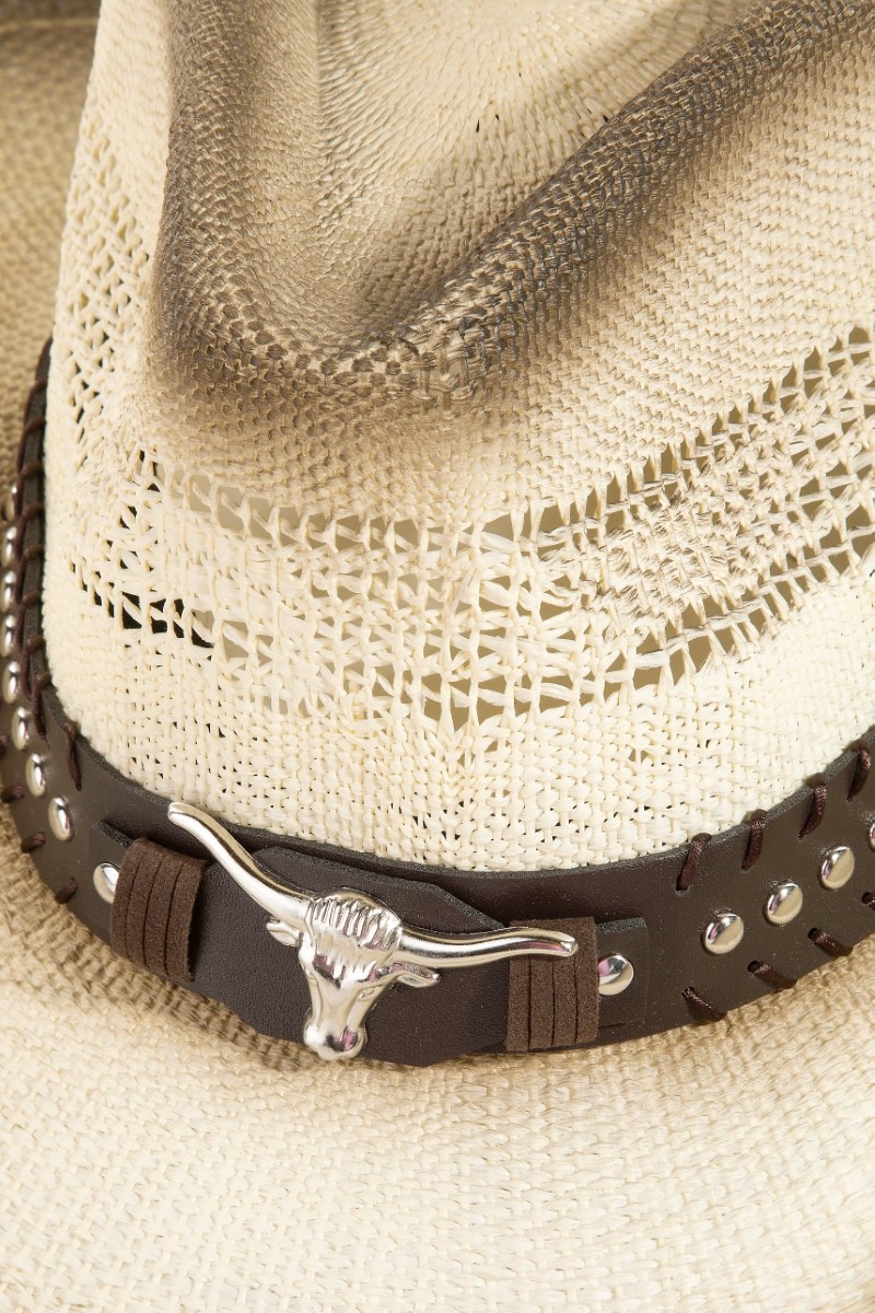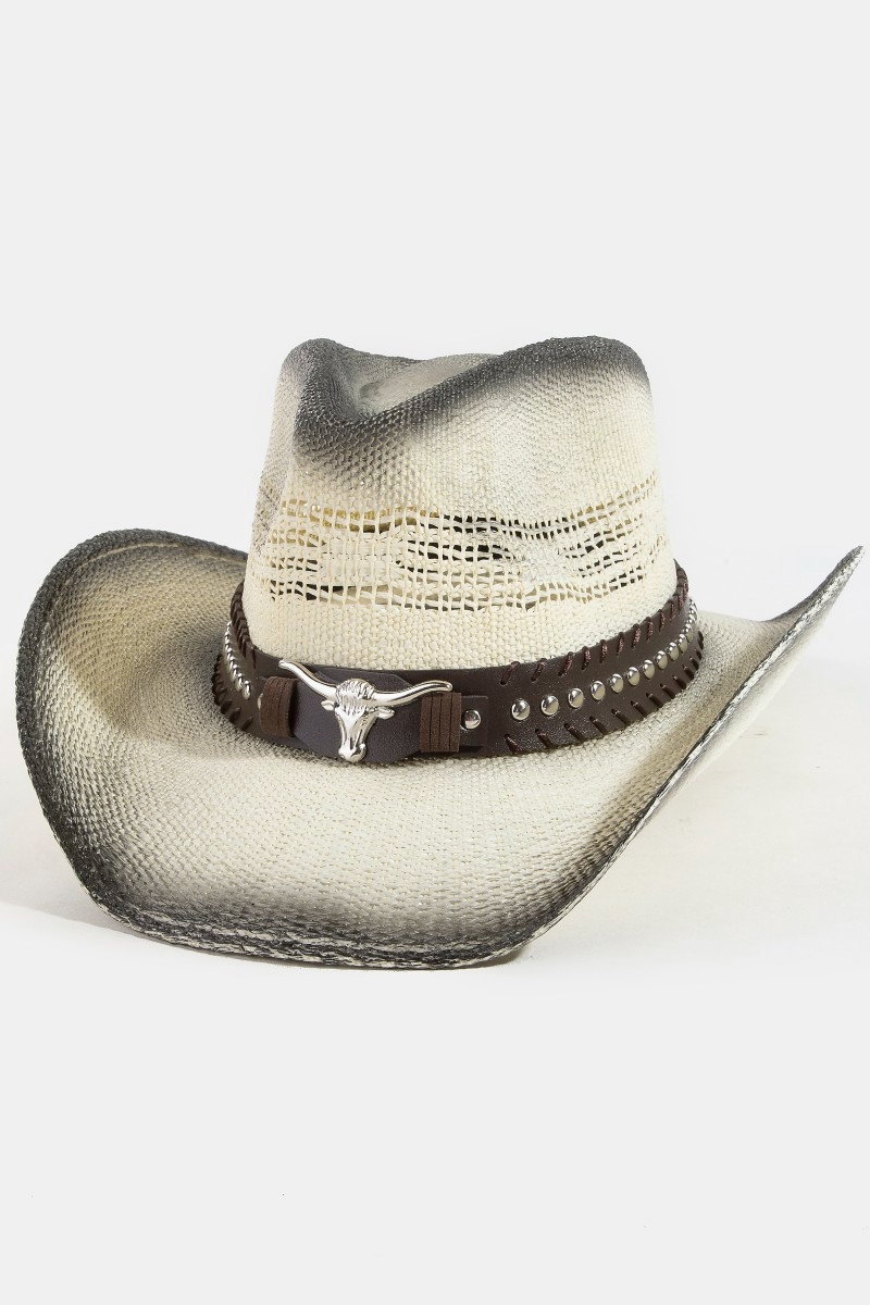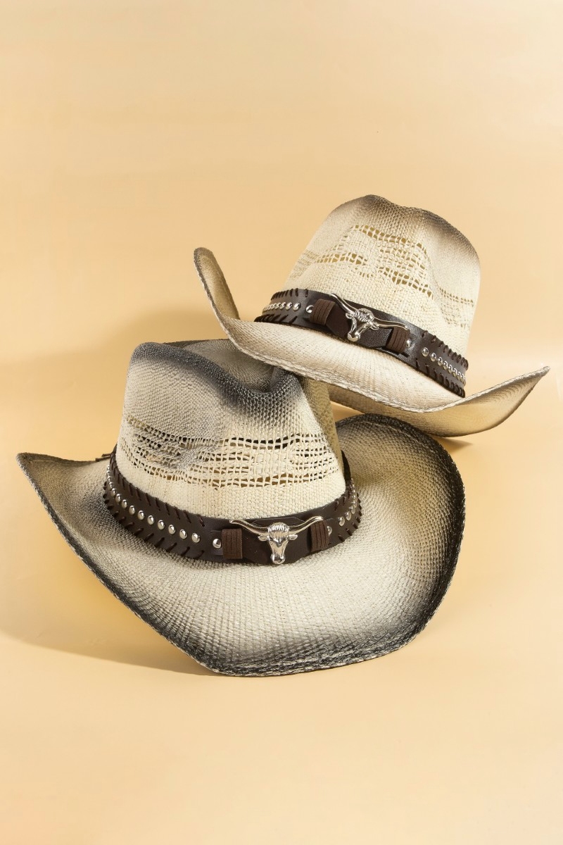 - This cowboy hat showcases a timeless western long horn strap straw style. Savor the allure of detailed craftsmanship in this exquisite cowboy hat.