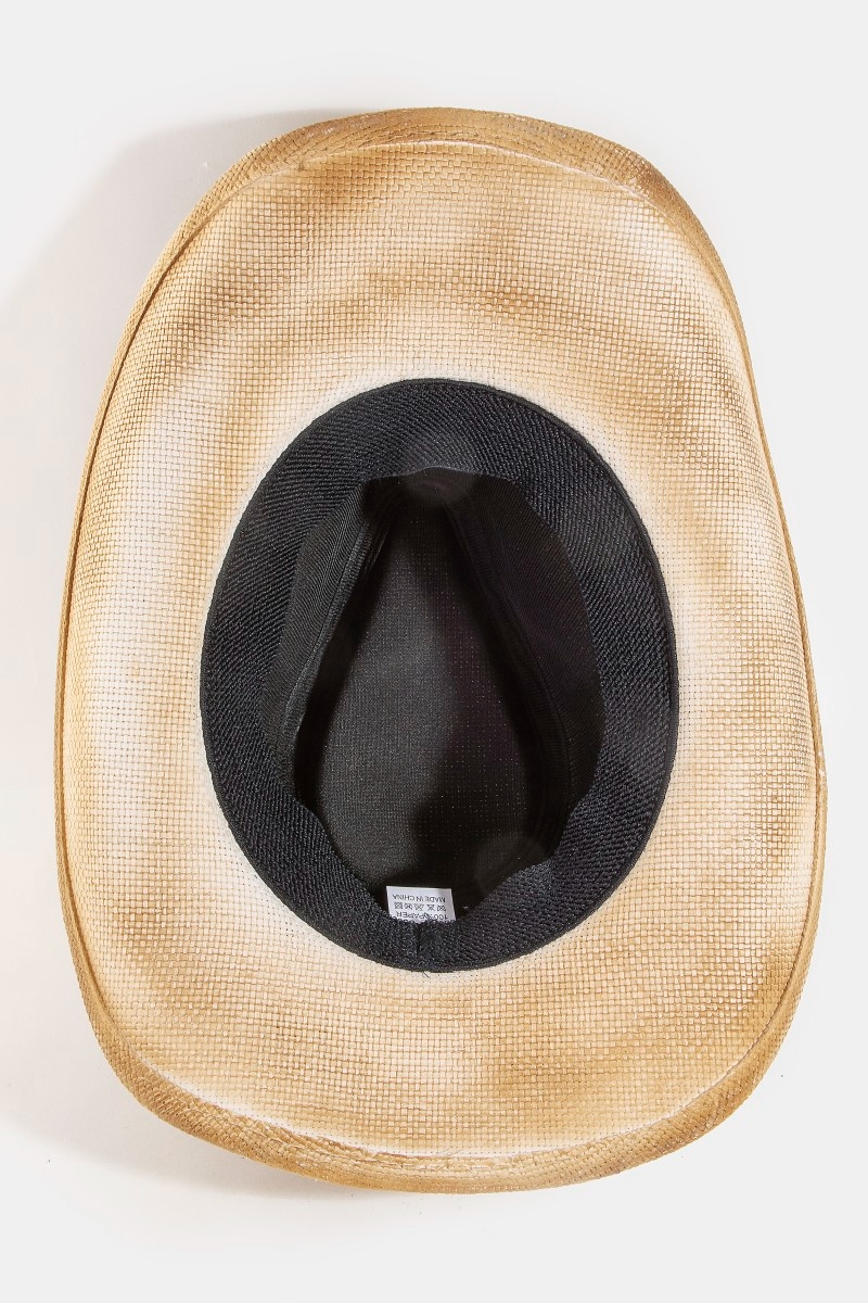Two Tone Straw Braided Patches Cowboy Hat