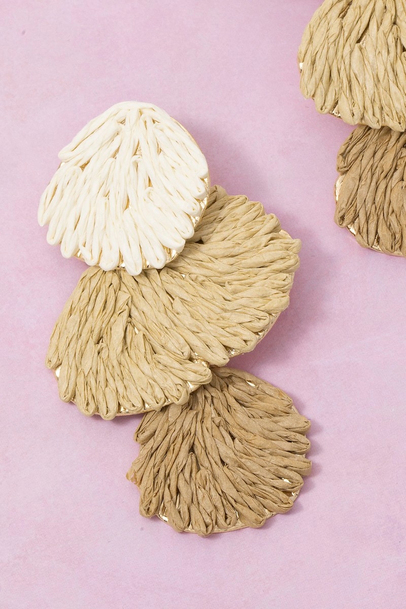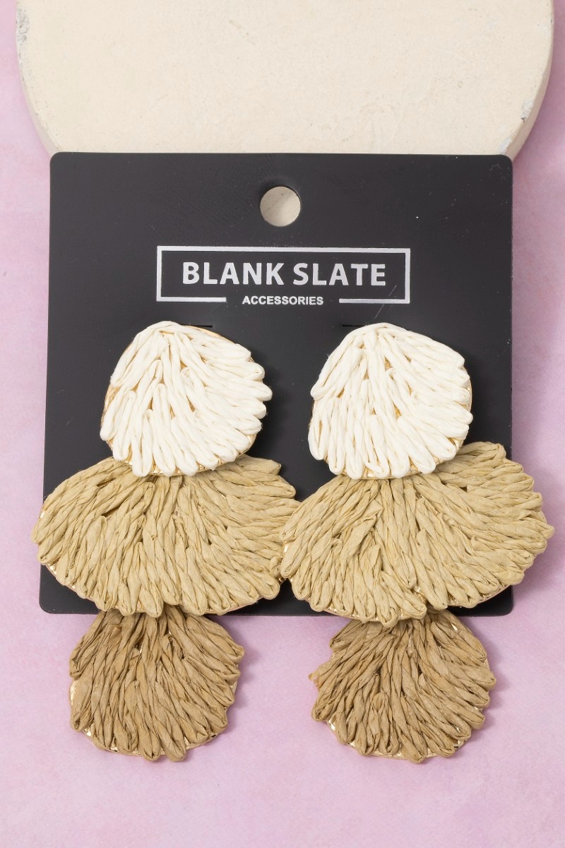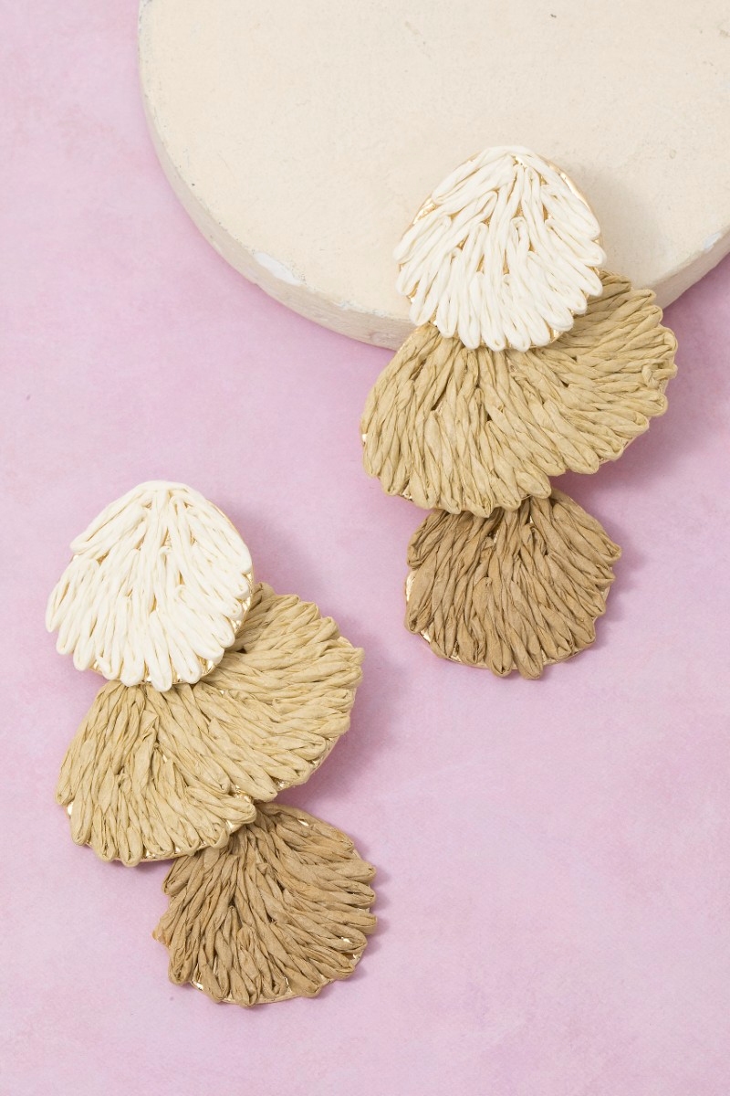 - This pair of dangle earrings displays a fashionable 3 tone petals tiered style. Elevate your ensemble with this pair of dangle earrings that effortlessly captures the essence of refined fashion.