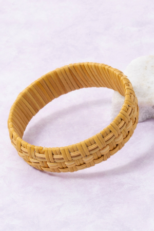 - This bangle bracelet showcases a unique intricate straw basket weave style. Explore a blend of classic charm and contemporary flair.