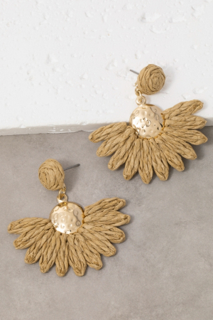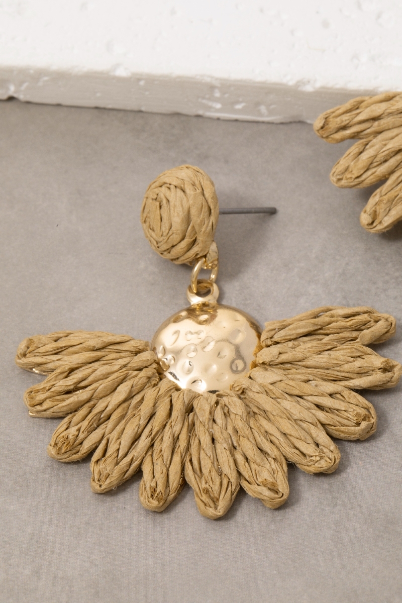 - This pair of dangle earrings introduces a stunning straw weave half flower style. Discover the perfect balance of subtlety and flair as this pair of dangle earrings effortlessly completes your look.