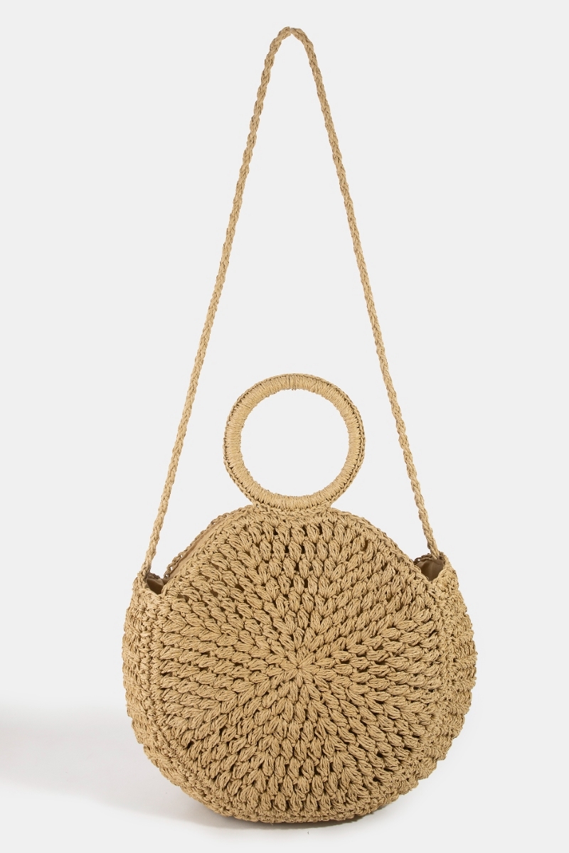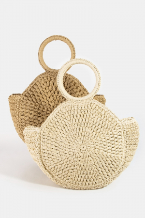 - This hand bag brings a unique hoop handle circle straw braided style. Delight in the nuanced details that make this hand bag a testament to fine design and impeccable taste.