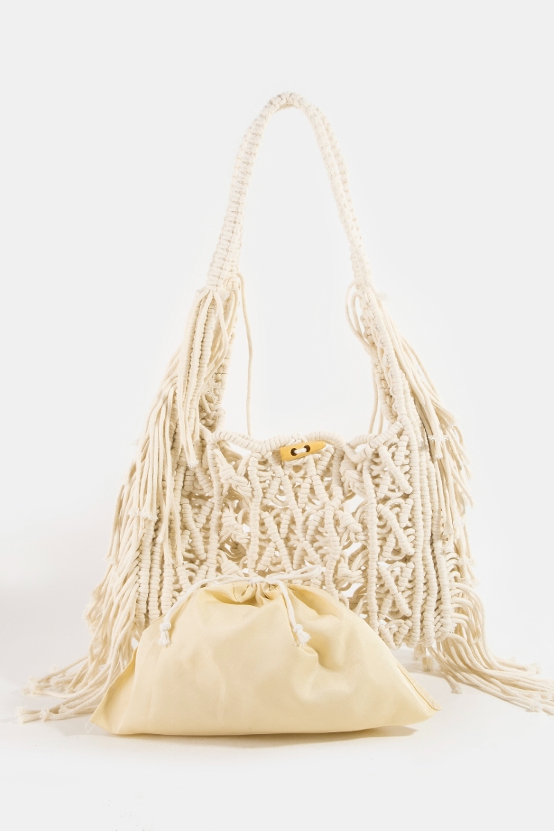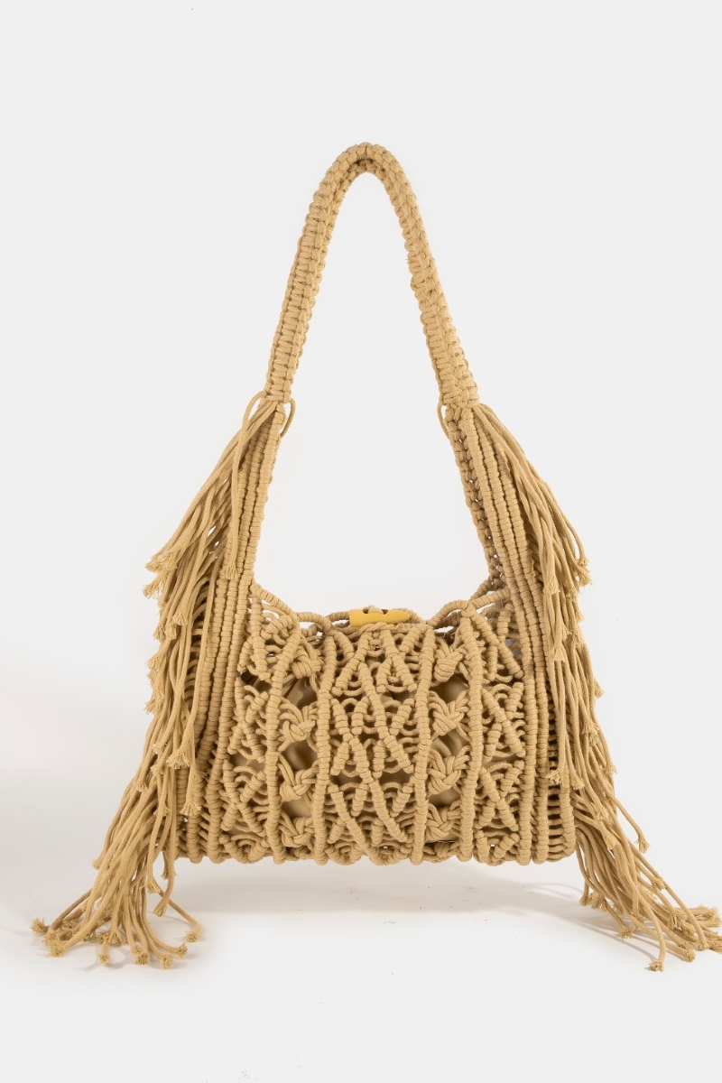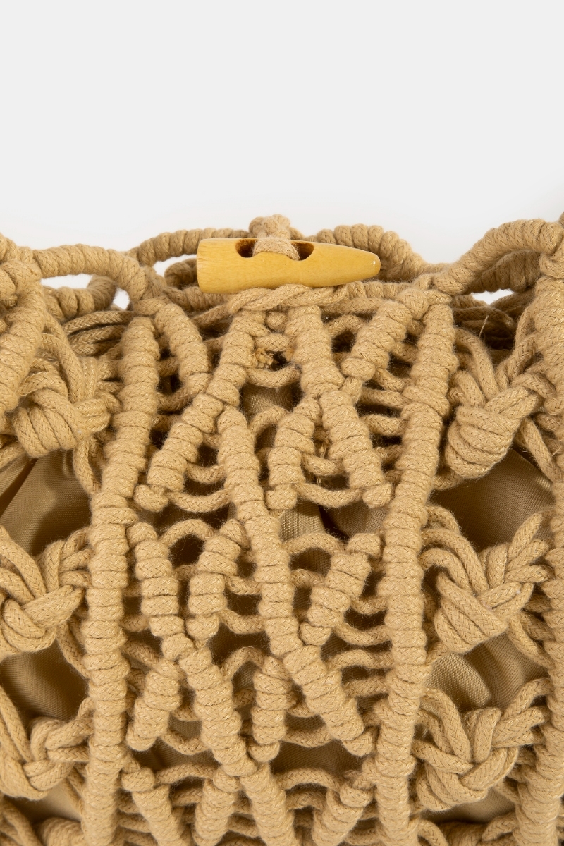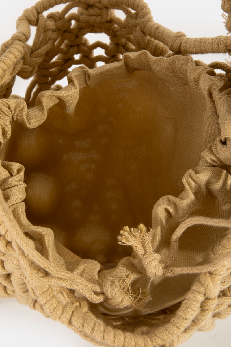 • This hand bag showcases a timeless intricate weave mesh bucket bag style. Discover the perfect balance of subtlety and flair as this hand bag effortlessly completes your look.