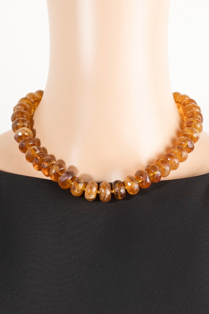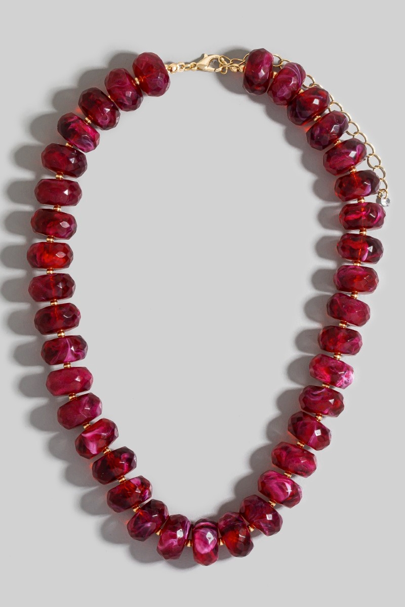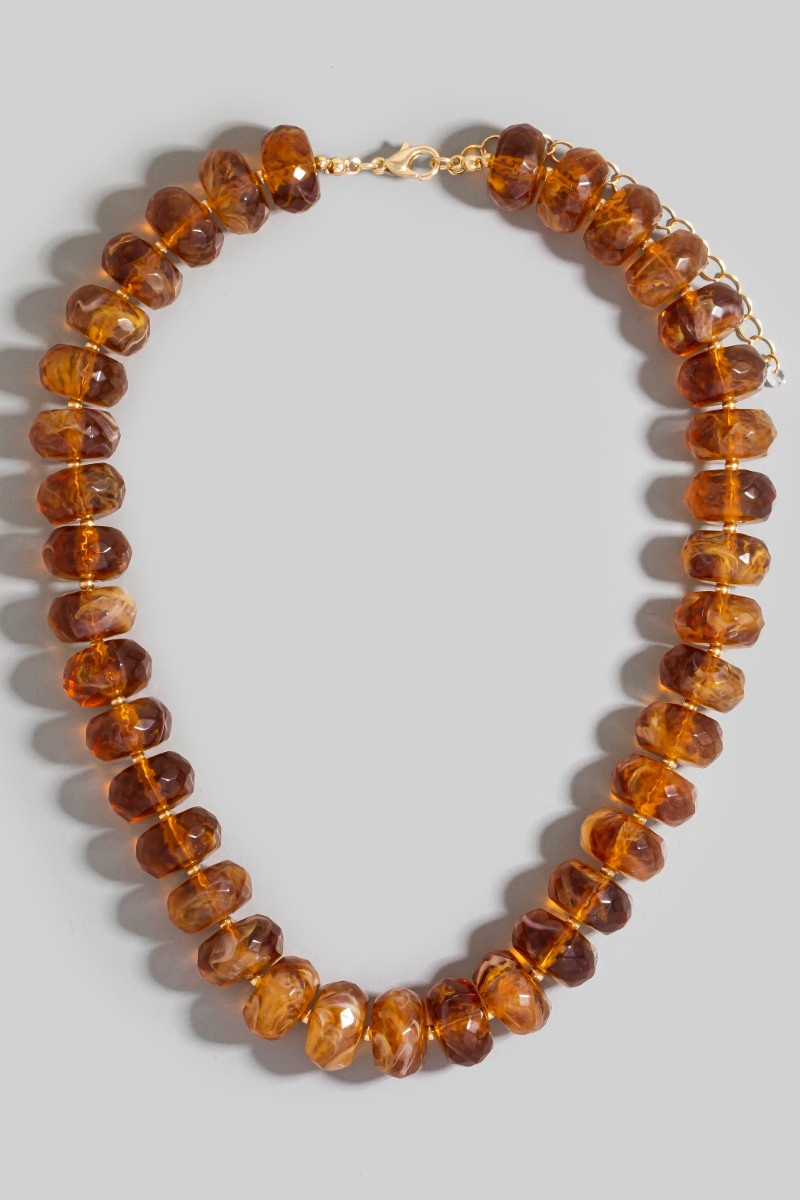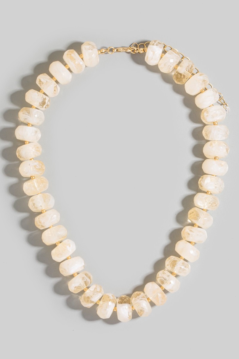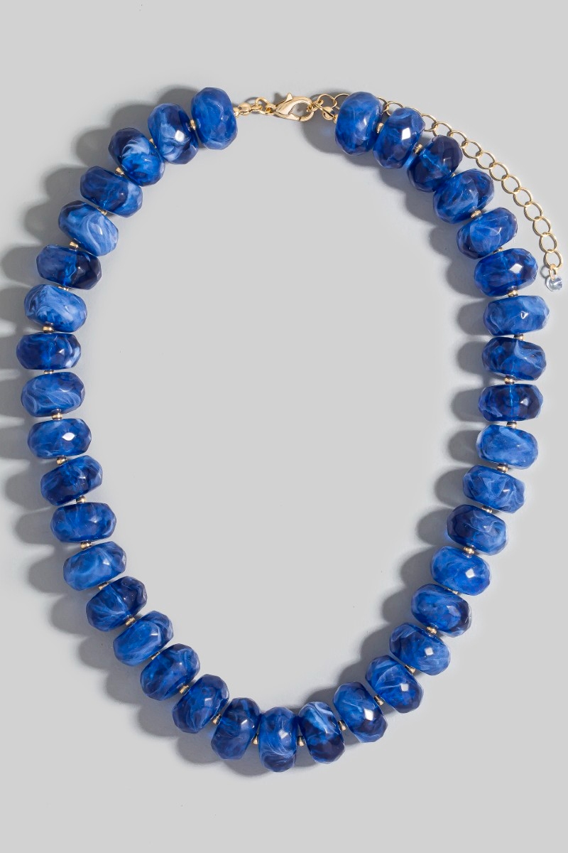 • This necklace adds a modern large faceted marble resin beaded style. Indulge in the artistry of accessorizing with this unique piece.