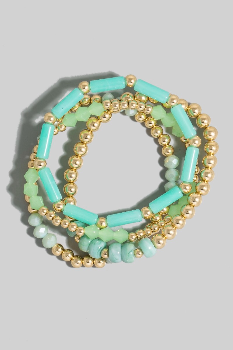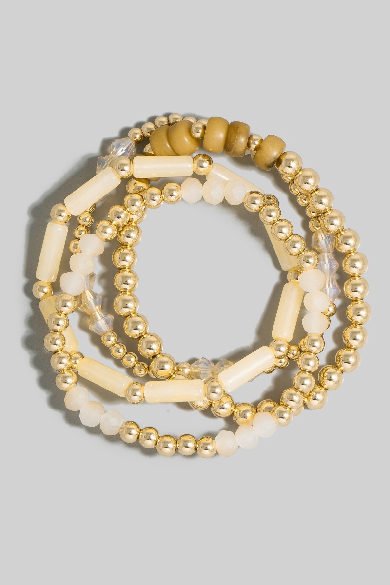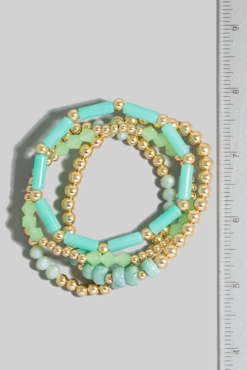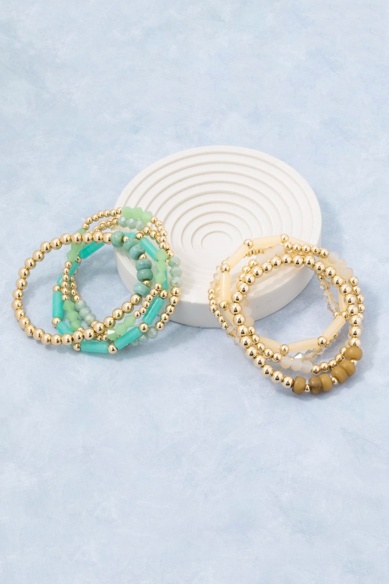 - This bracelet adds a modern metallic and tube mixed beaded set style. Celebrate the art of accessorizing with this piece that effortlessly encapsulates modern trends.