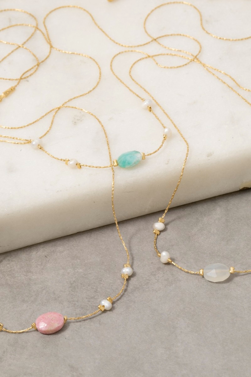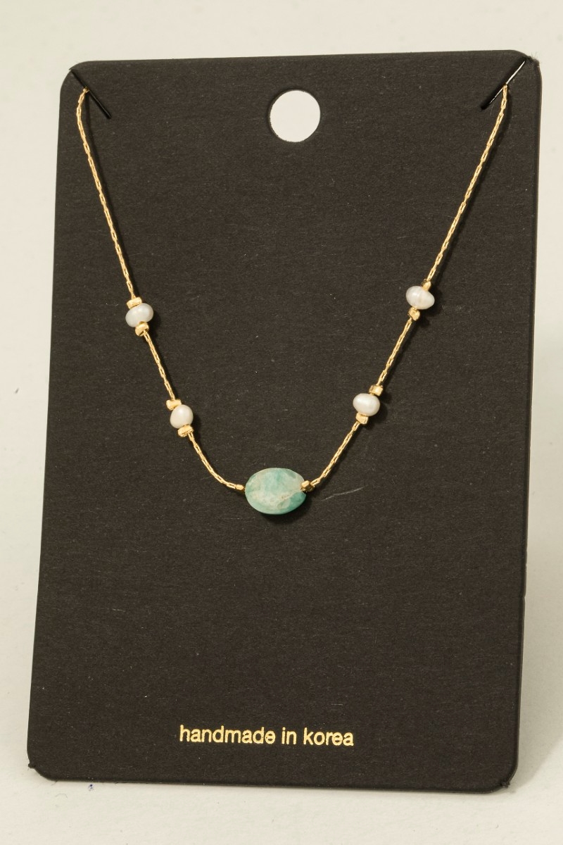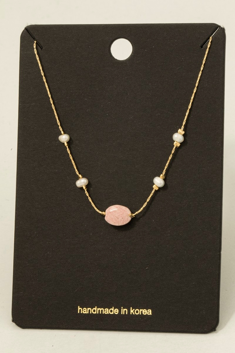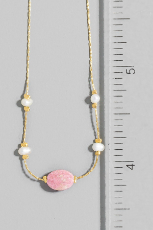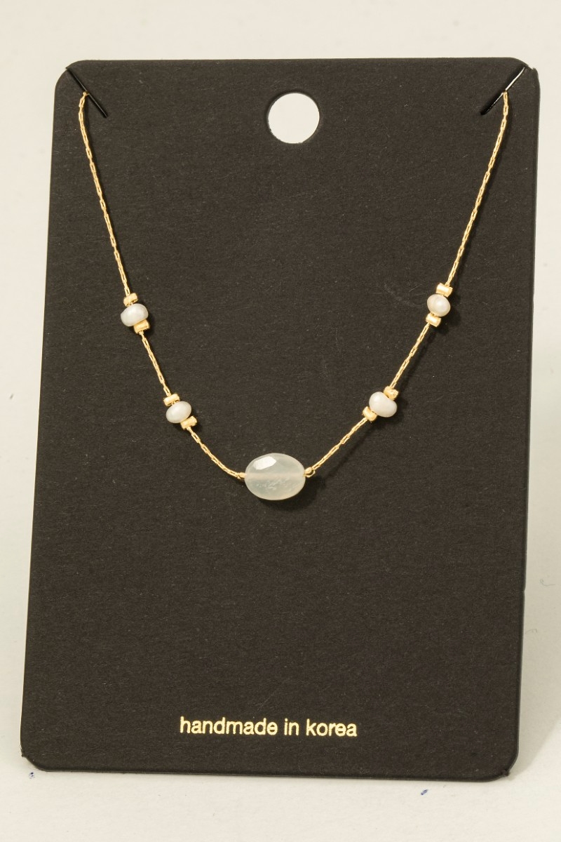 • This necklace brings a luxurious oval stone pearl station bead style. Immerse yourself in the world of understated glamour as this necklace effortlessly exudes timeless appeal.