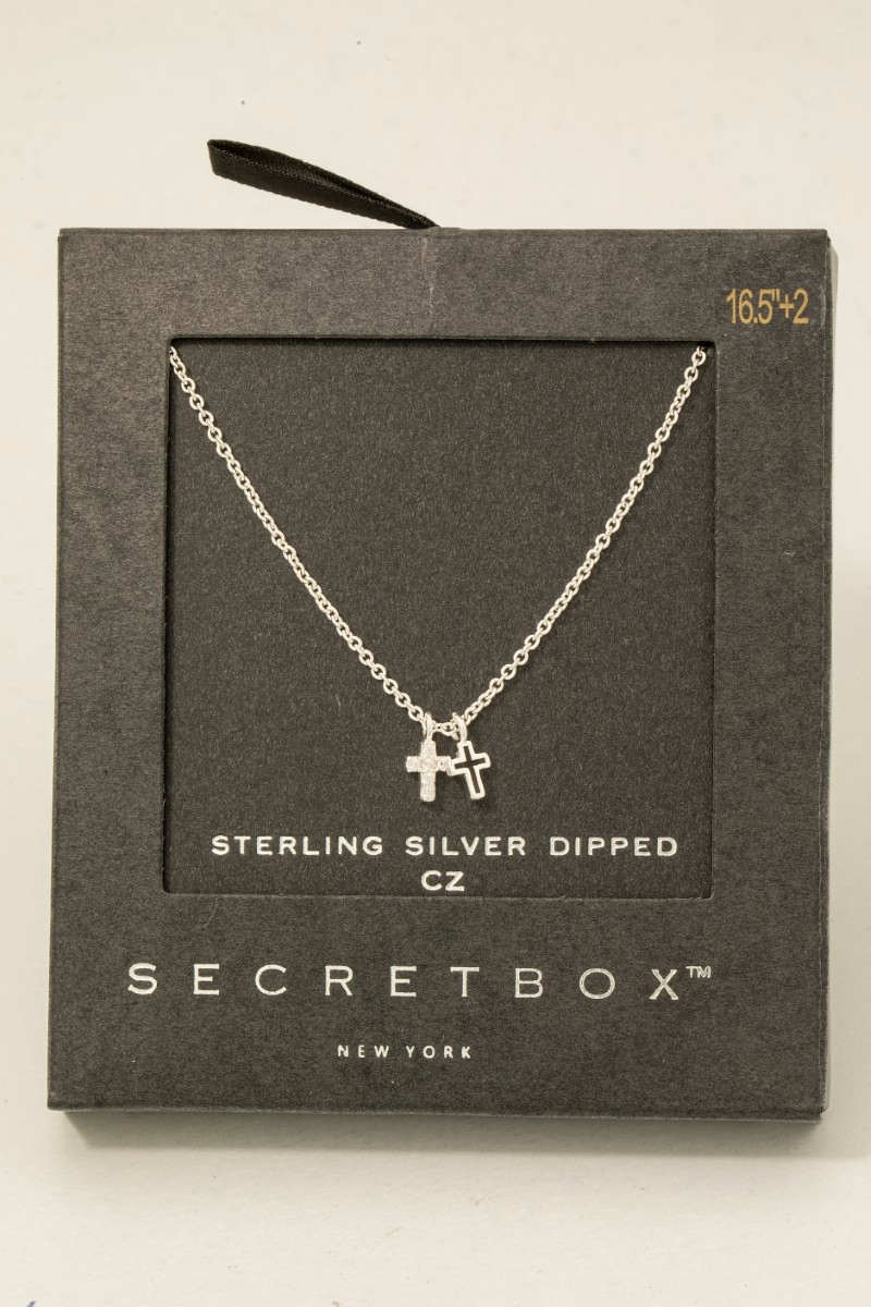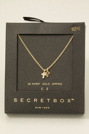 - This necklace showcases a timeless secret box gold dipped cubic zirconia cross pendant style. Redefine your look effortlessly with this standout, on-trend piece.