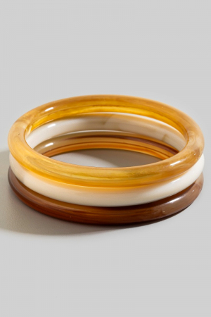 • This bangle bracelet features a fashionable thin three piece acrylic set style. Indulge in the artistry of accessorizing with this unique piece.