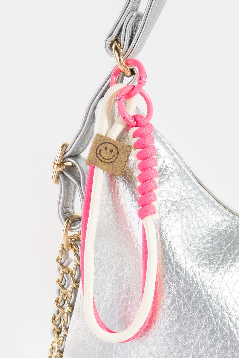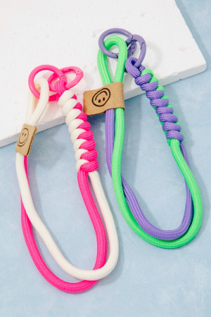 - This bag charm introduces a stunning two tone braided bungee cord style. Explore a blend of classic charm and contemporary flair.