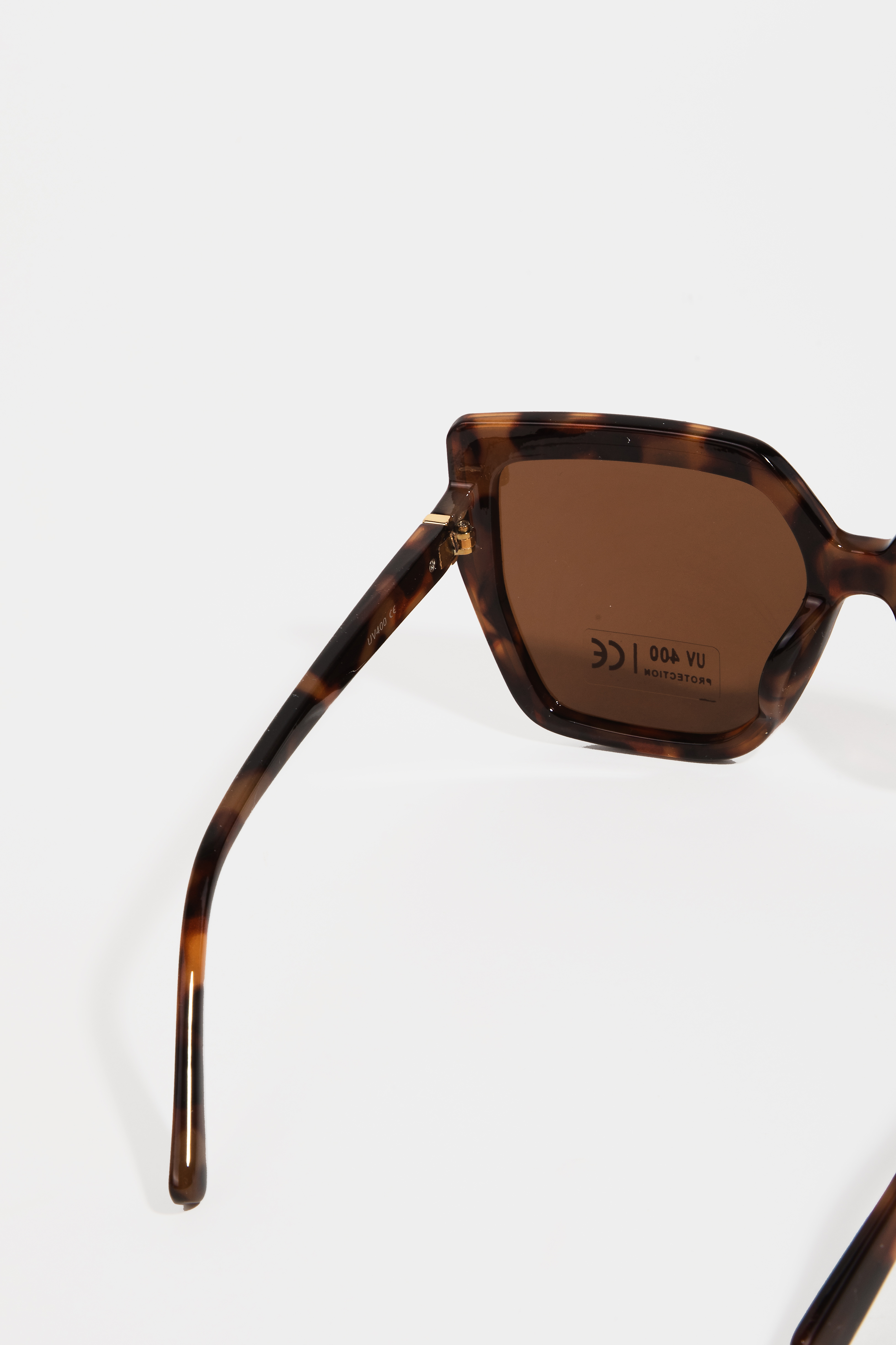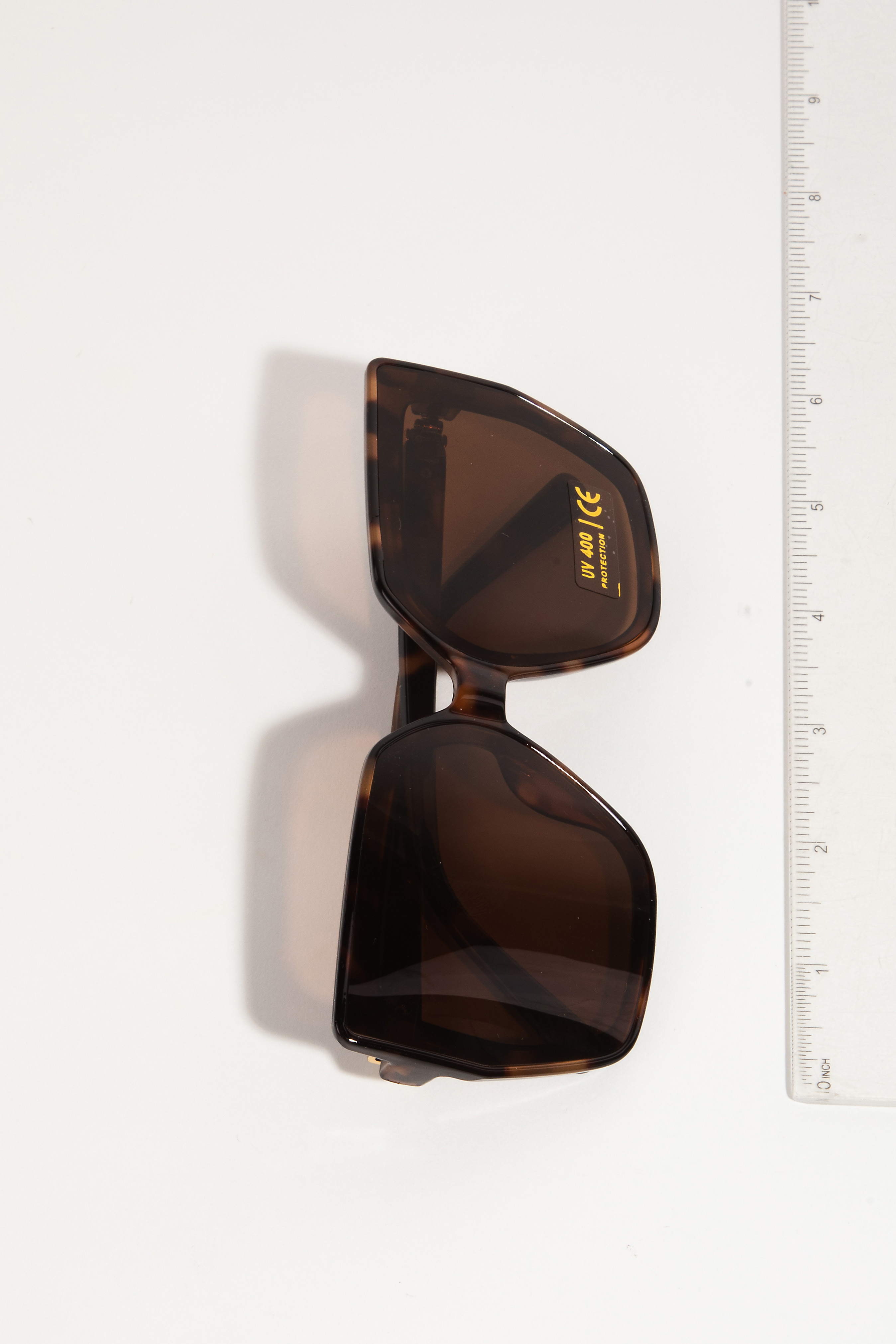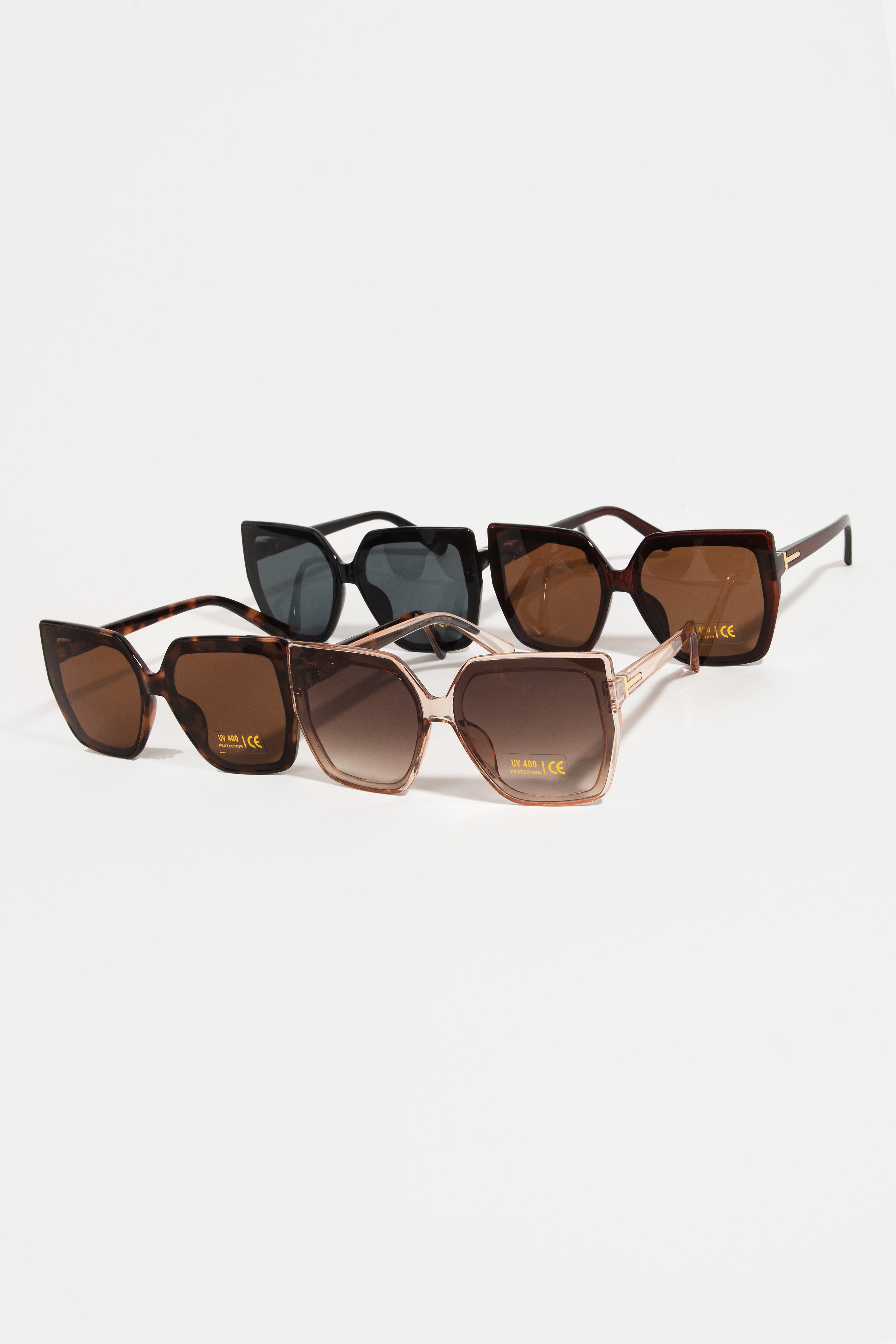 - This set of sunglasses brings a luxurious metallic accent large square sunglasses style. Savor the allure of detailed craftsmanship in this exquisite set of sunglasses.