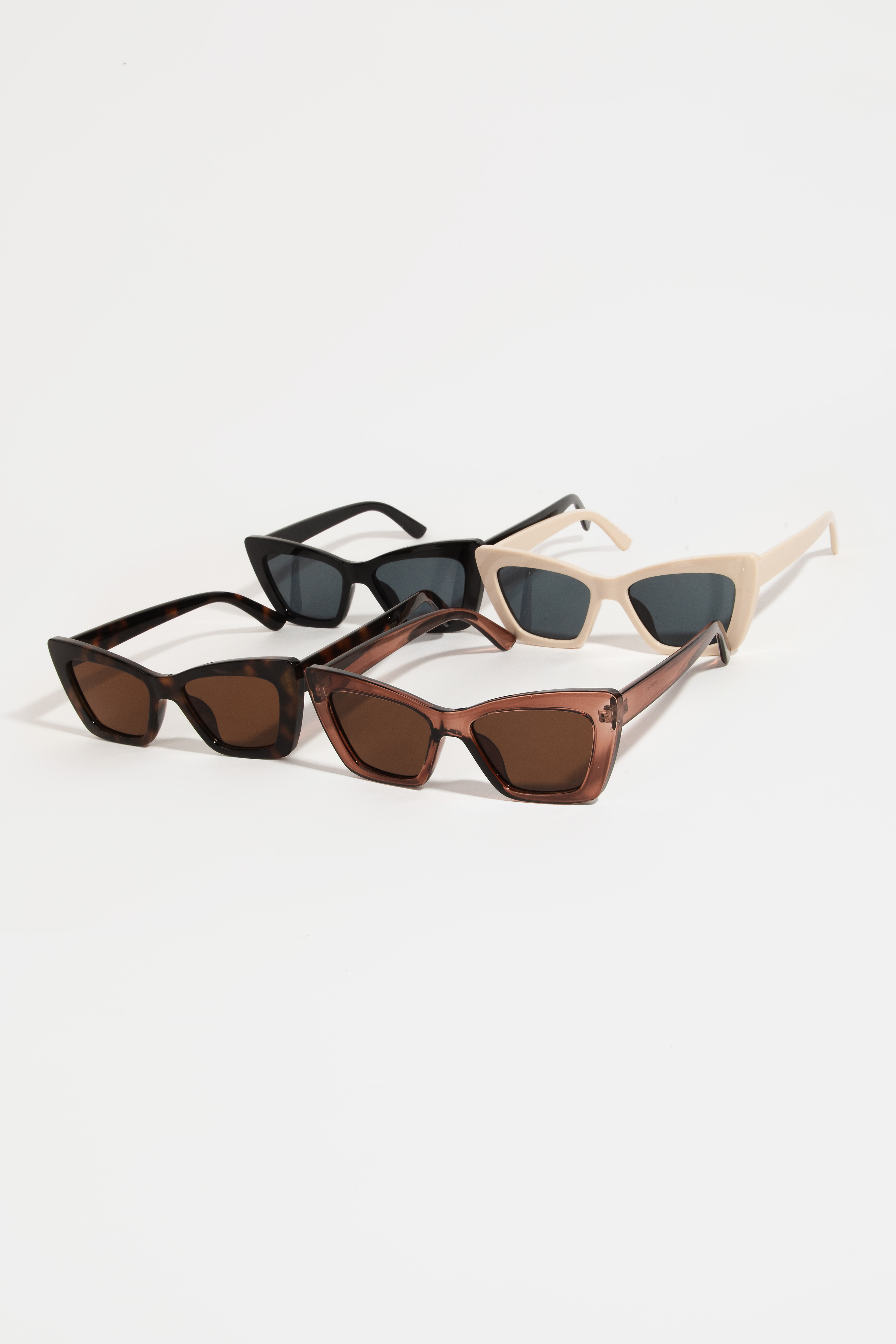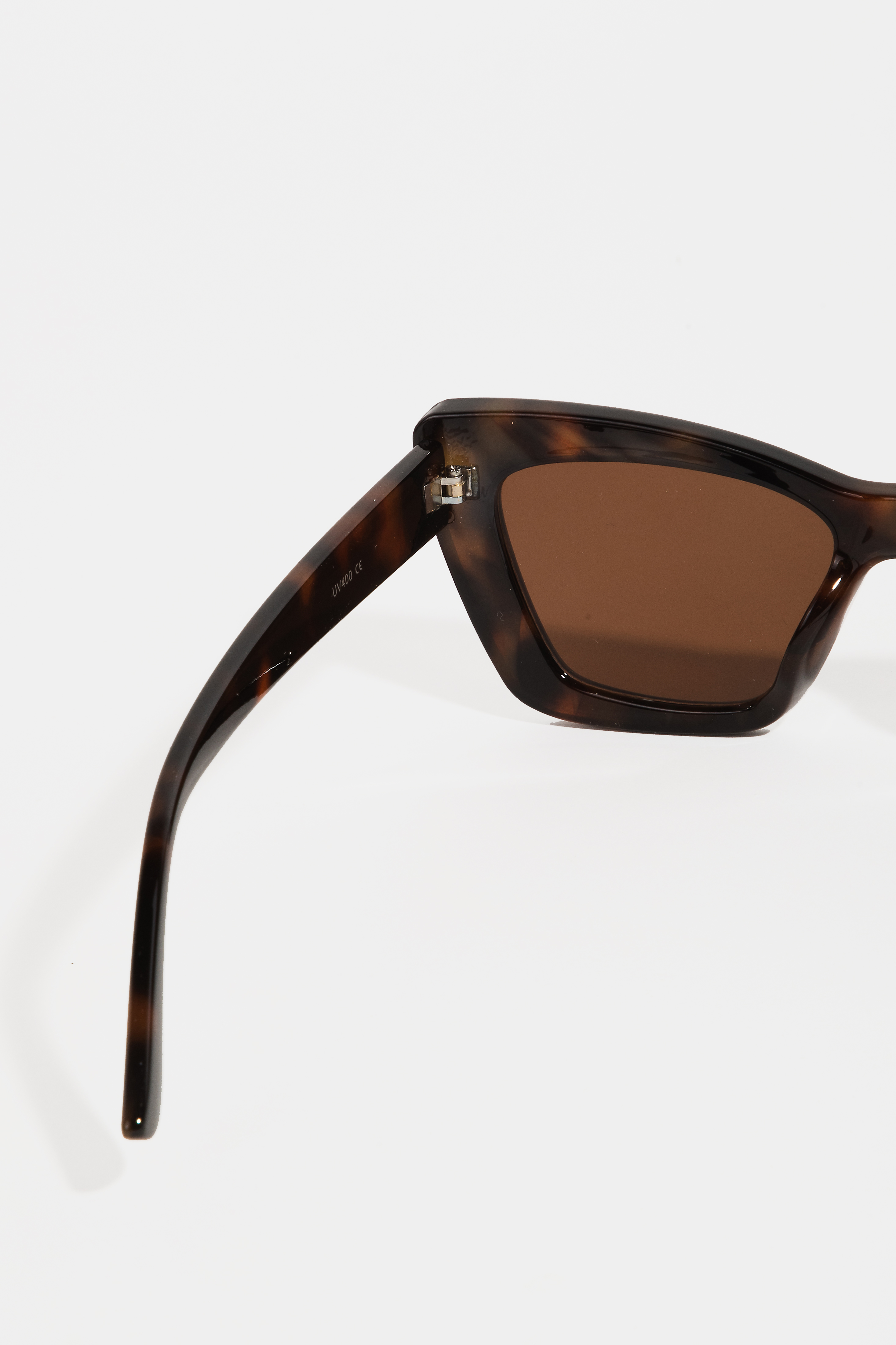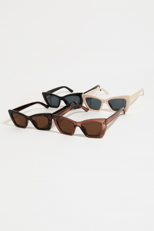 • This set of sunglasses displays a fashionable sharp cat eye frame sunglasses style. Witness the perfect fusion of style and functionality as this set of sunglasses effortlessly complements your lifestyle.