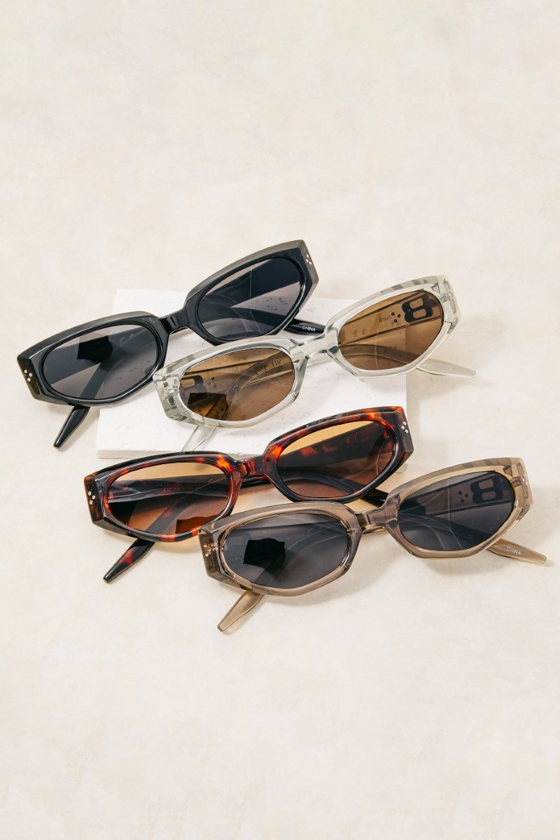 - This set of sunglasses showcases a timeless metallic accent narrow oval sunglasses set style. Immerse yourself in the details of design, as this set of sunglasses effortlessly becomes a conversation starter.