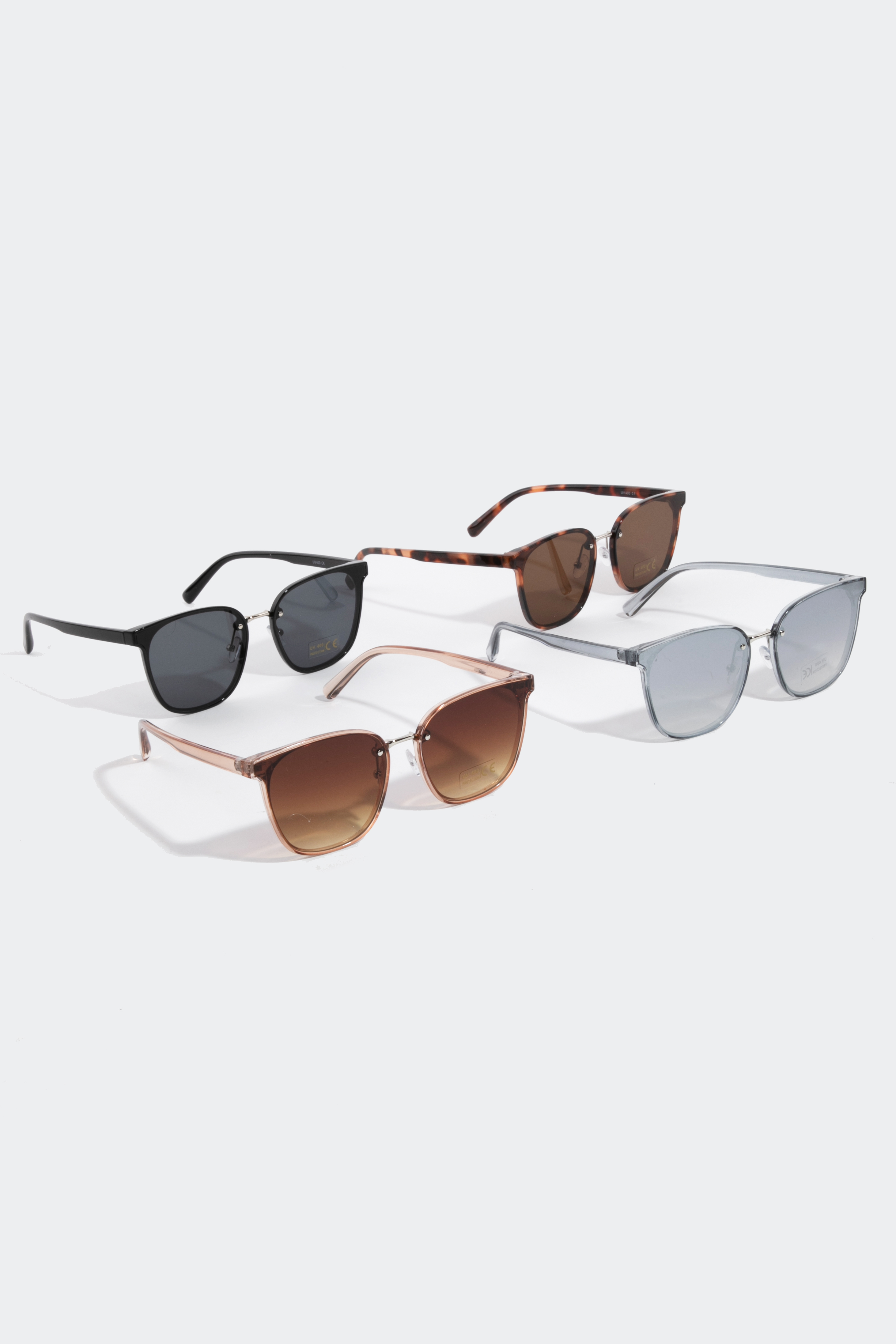 - This set of sunglasses showcases a timeless thin plastic frame sunglasses style. Redefine your look effortlessly with this standout, on-trend piece.
