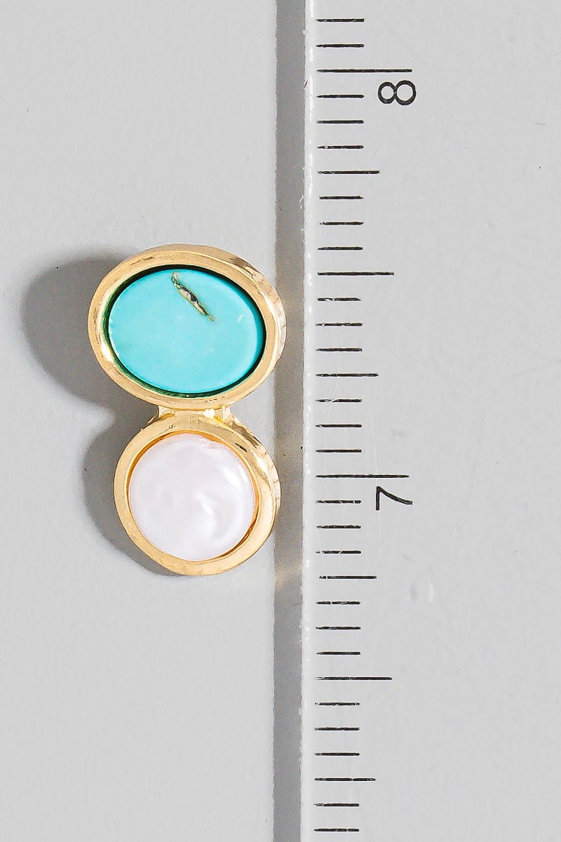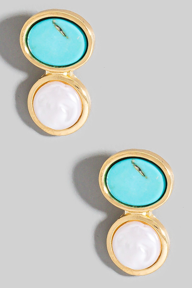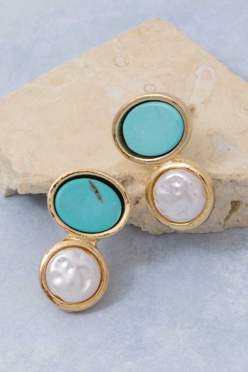 • This pair of drop earrings adds a modern turquoise and pearl ovals stud style. Unveil modern elegance with this subtly intricate pair of drop earrings.