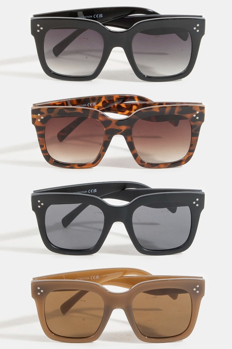 - This set of sunglasses showcases a timeless acetate frame sunglasses set style. Experience refined sophistication with this understated yet stylish piece.