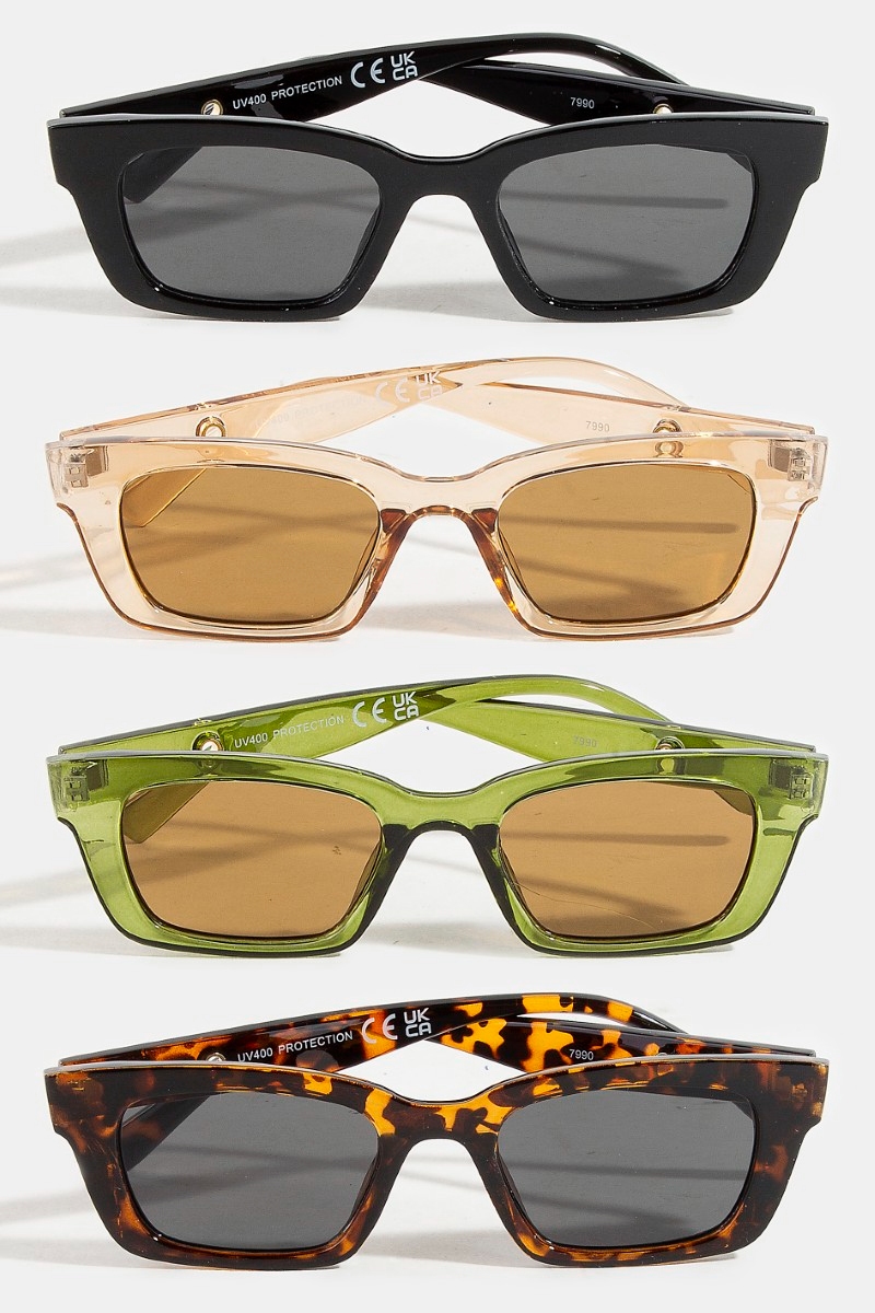 - This set of sunglasses brings a unique acetate rectangle sunglasses set style. Experience a burst of creativity in accessorizing as this piece effortlessly sets the tone for your unique style.