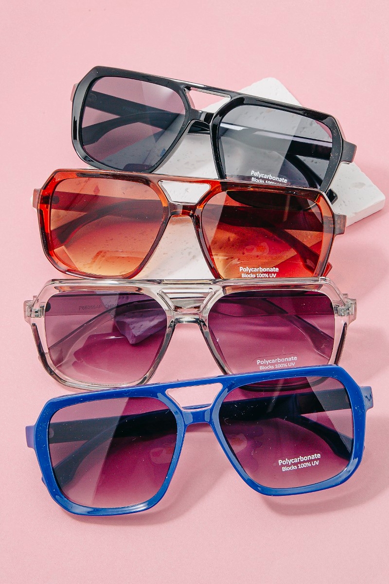 • This set of sunglasses adds a modern Tortoise squared aviator frame sunglasses set style. Redefine your look effortlessly with this standout, on-trend piece.