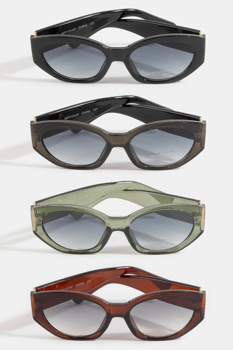 - This set of sunglasses brings a luxurious angular oval cat eye sunglasses style. Immerse yourself in the details of design, as this set of sunglasses effortlessly becomes a conversation starter.