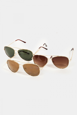 Metallic Frame Aviator Sunglasses Set