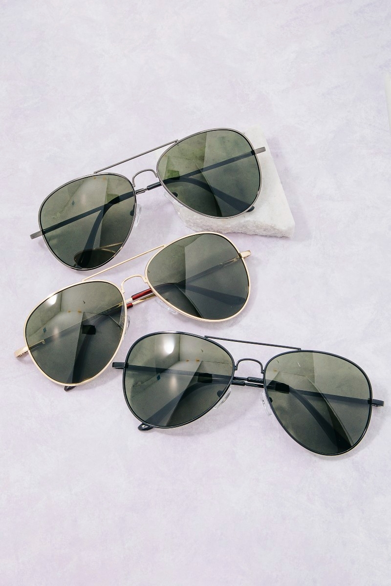 - This set of sunglasses brings a luxurious double bridge metal frame aviator sunglasses set style. Elevate your ensemble with this chic, timeless set of sunglasses.