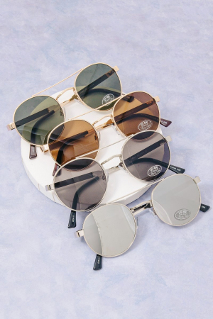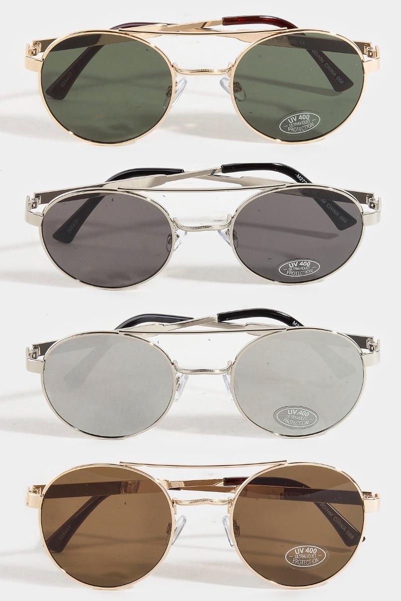- This set of sunglasses displays a fashionable metallic frame aviator sunglasses set style. Savor the allure of detailed craftsmanship in this exquisite set of sunglasses.