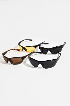 - This set of sunglasses displays a fashionable bottomless Tortoise sunglasses set style. Discover the perfect balance of subtlety and flair as this set of sunglasses effortlessly completes your look.