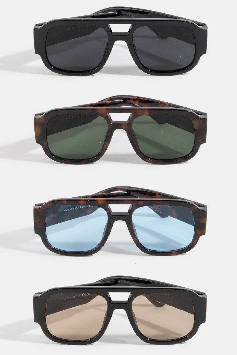 • This set of sunglasses brings a stunning bridge cutout oversized square flat top aviator sunglasses style. Experience a burst of creativity in accessorizing as this piece effortlessly sets the tone for your unique style.