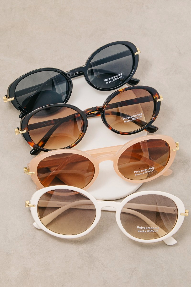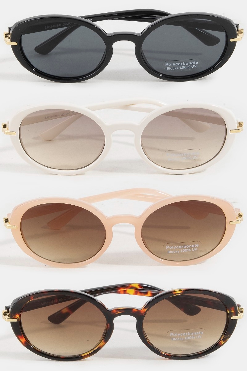 - This set of sunglasses showcases a unique classic oval lens sunglasses set style. Experience a burst of creativity in accessorizing as this piece effortlessly sets the tone for your unique style.