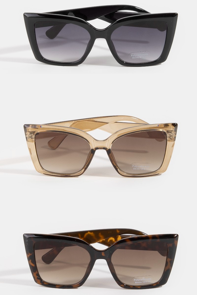 - This set of sunglasses brings a stunning glossy oversized cat eye square sunglasses set style. Celebrate the art of accessorizing with this piece that effortlessly encapsulates modern trends.