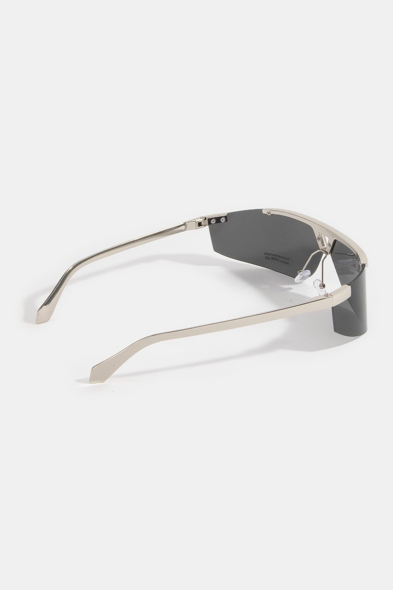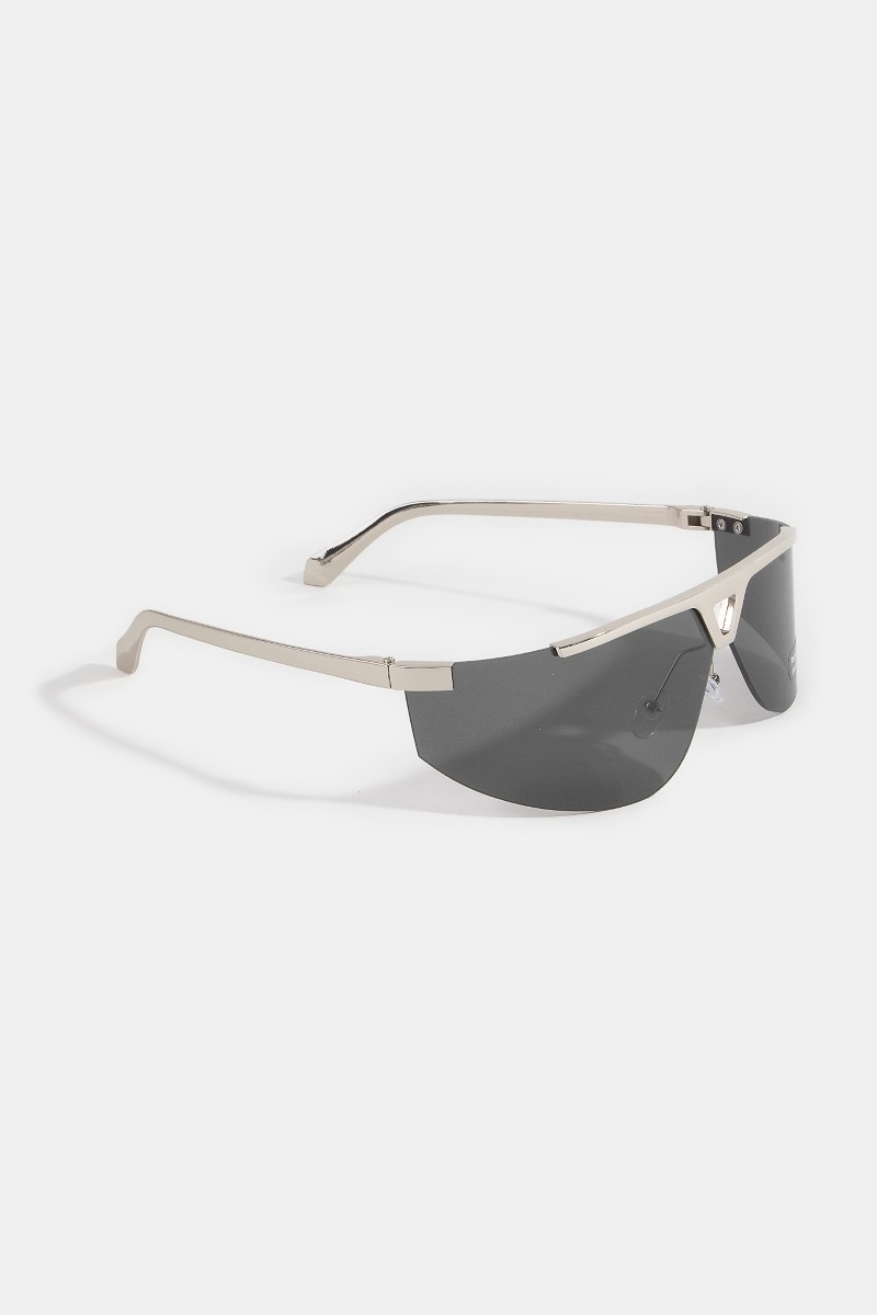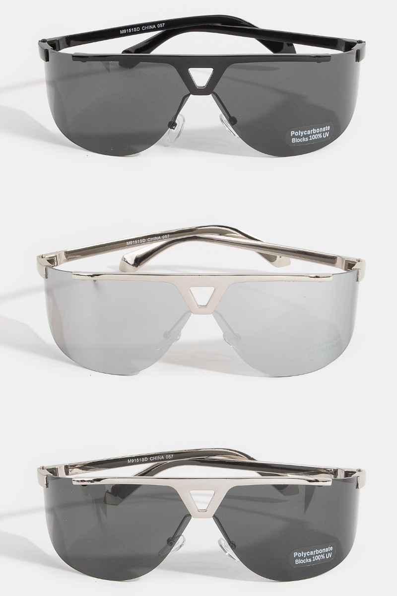 - This set of sunglasses introduces a stunning half frame shield sunglasses with triangle bridge cutout style. Indulge in the allure of exquisite craftsmanship as this set of sunglasses effortlessly adds a touch of luxury to your attire.