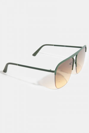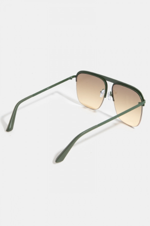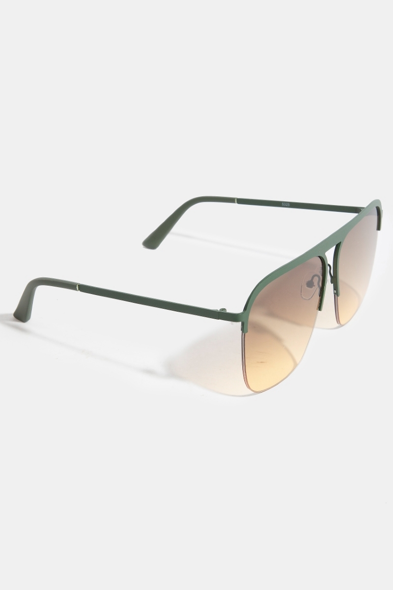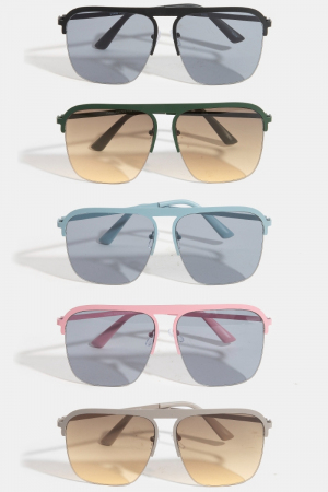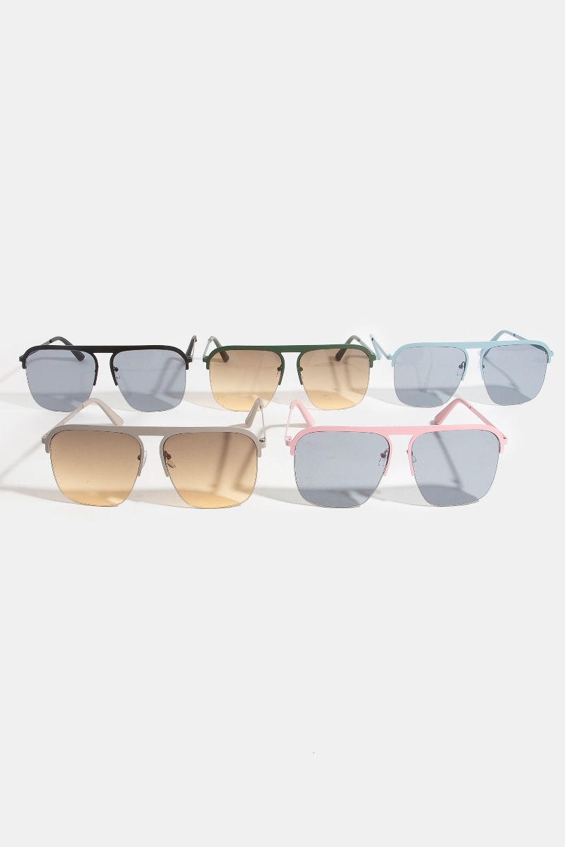 - This set of sunglasses showcases a timeless half frame square aviator sunglasses set style. Redefine your look effortlessly with this standout, on-trend piece.