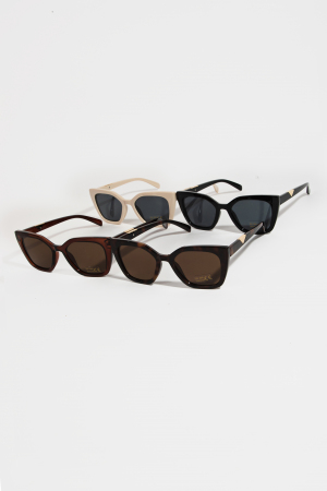 - This set of sunglasses brings a luxurious metallic accent cat eye sunglasses style. Savor the craftsmanship that goes beyond the ordinary, as this set of sunglasses effortlessly captivates attention.