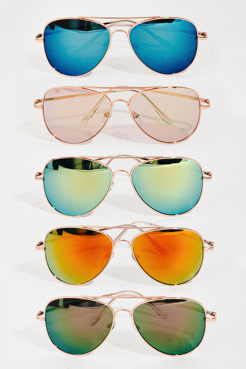 - This sunglasses features a fashionable metallic trim bridge aviator set style. Delight in the intricate details that make this accessory an essential element in expressing your fashion identity.