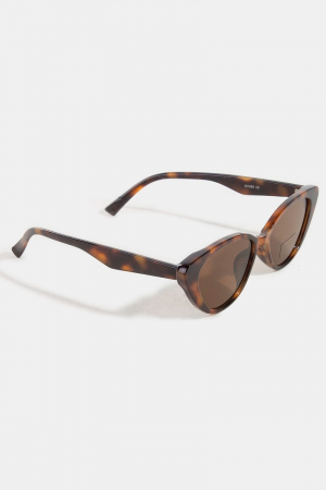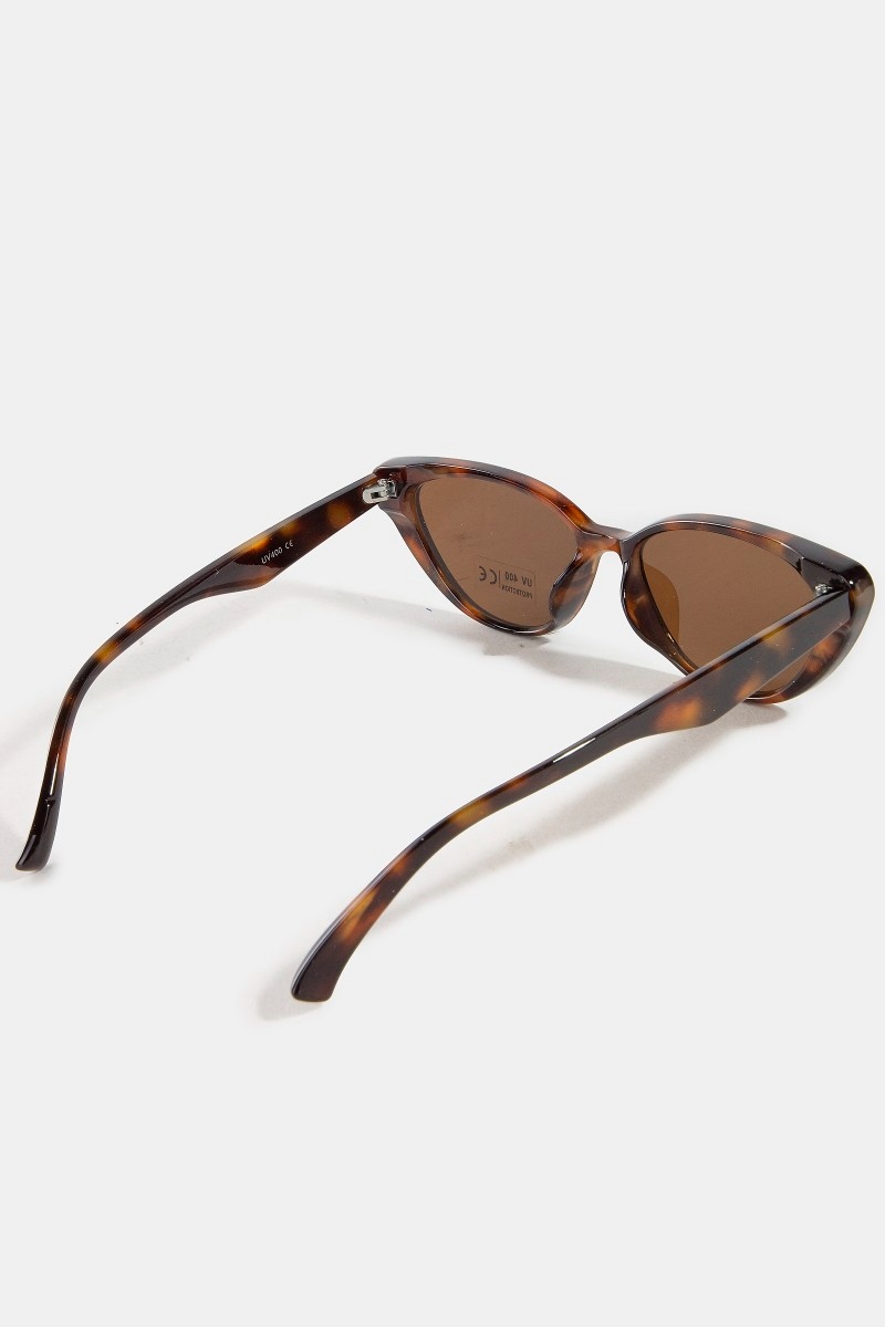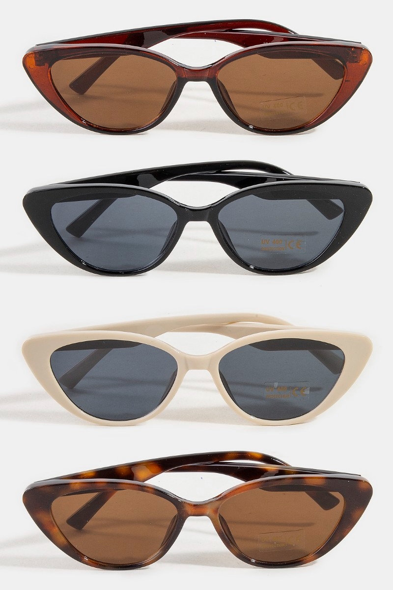 - This set of sunglasses displays a fashionable narrow cat eye frame sunglasses style. Explore a refined sense of style with this set of sunglasses, seamlessly elevating the chic factor of your look.