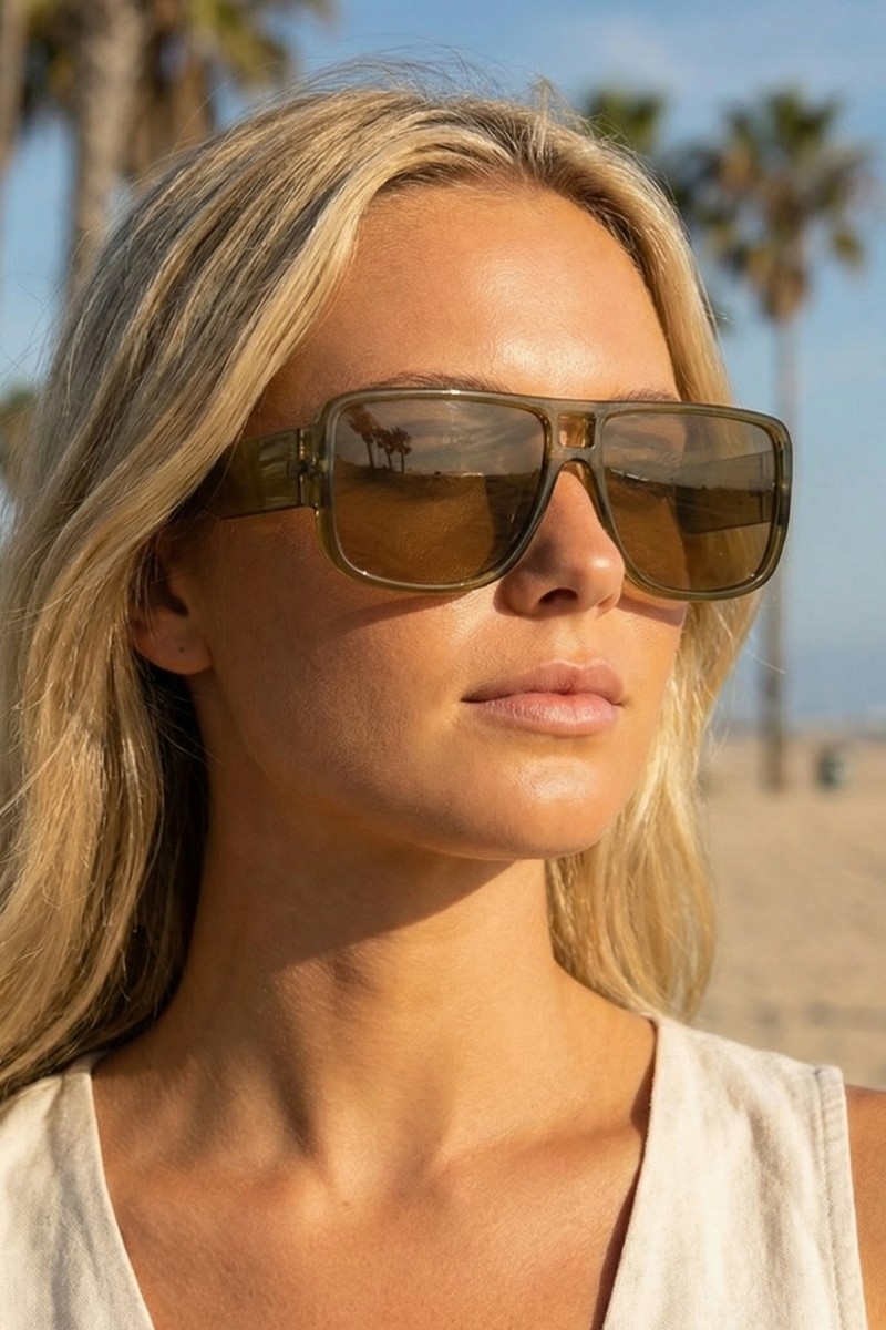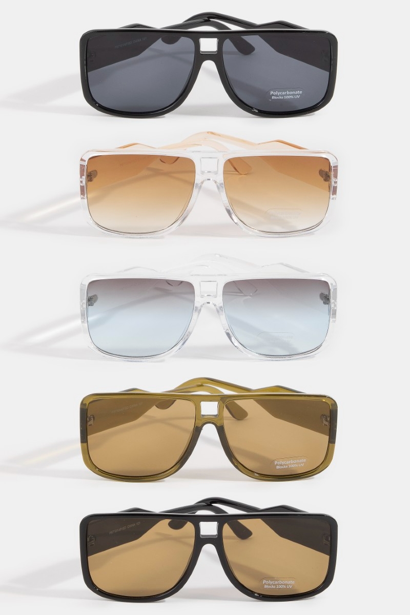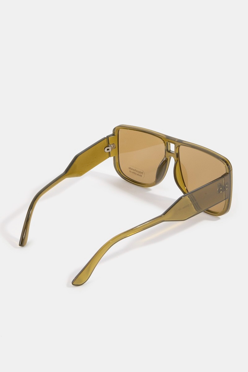 • This set of sunglasses displays a fashionable oversized flat top square sunglasses with brow bar style. Experience refined sophistication with this understated yet stylish piece.