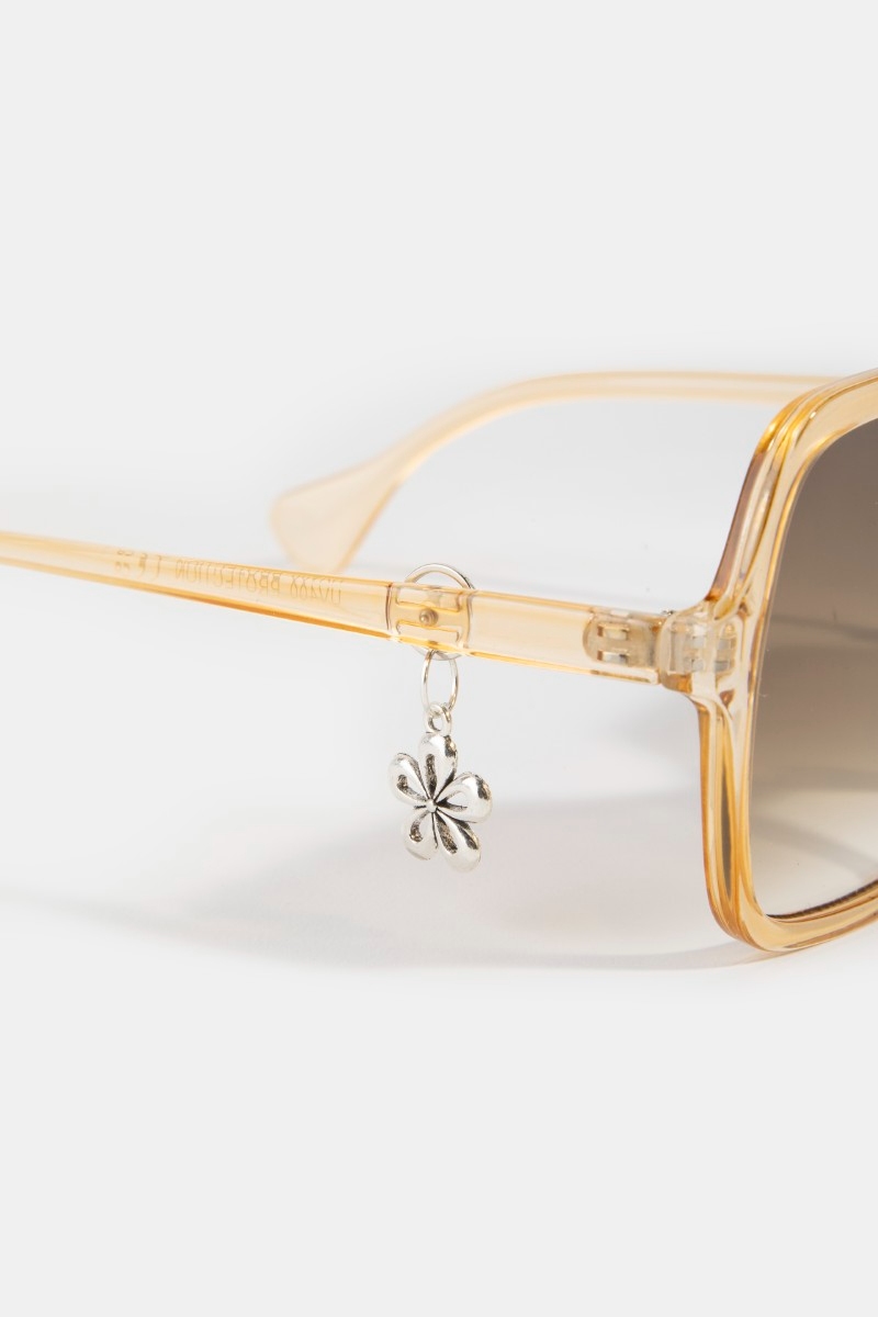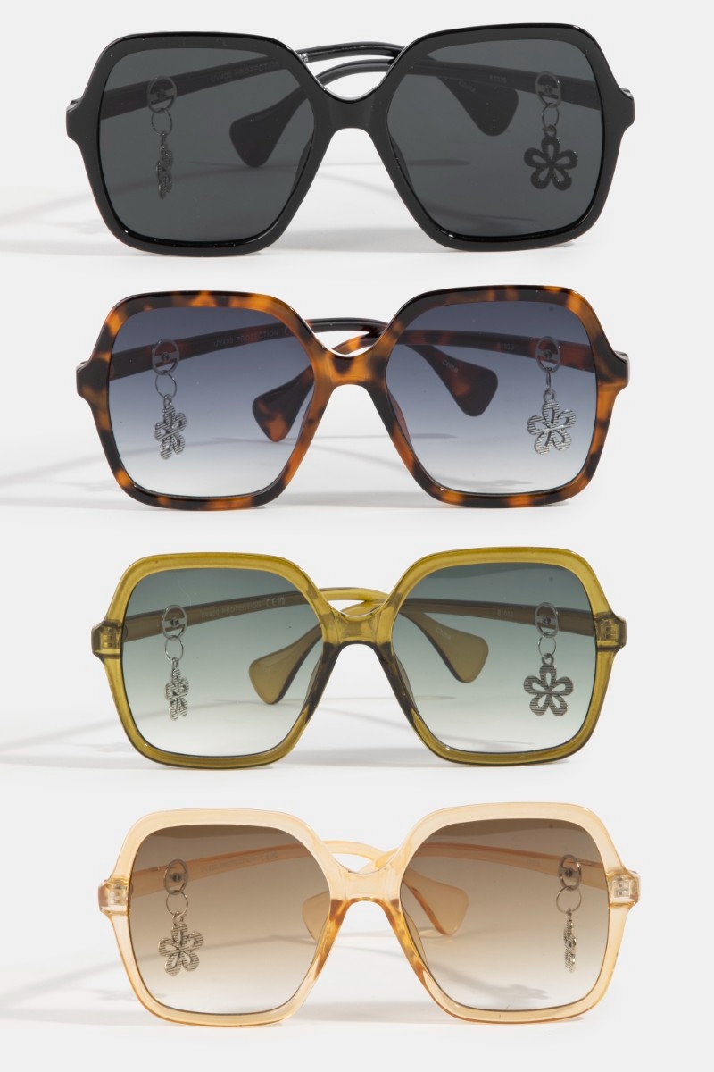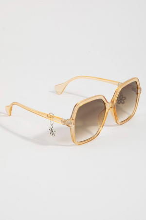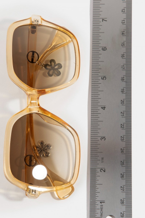 - This set of sunglasses introduces a unique oversized acetate frame flower accent sunglasses style. Immerse yourself in the details of design, as this set of sunglasses effortlessly becomes a conversation starter.