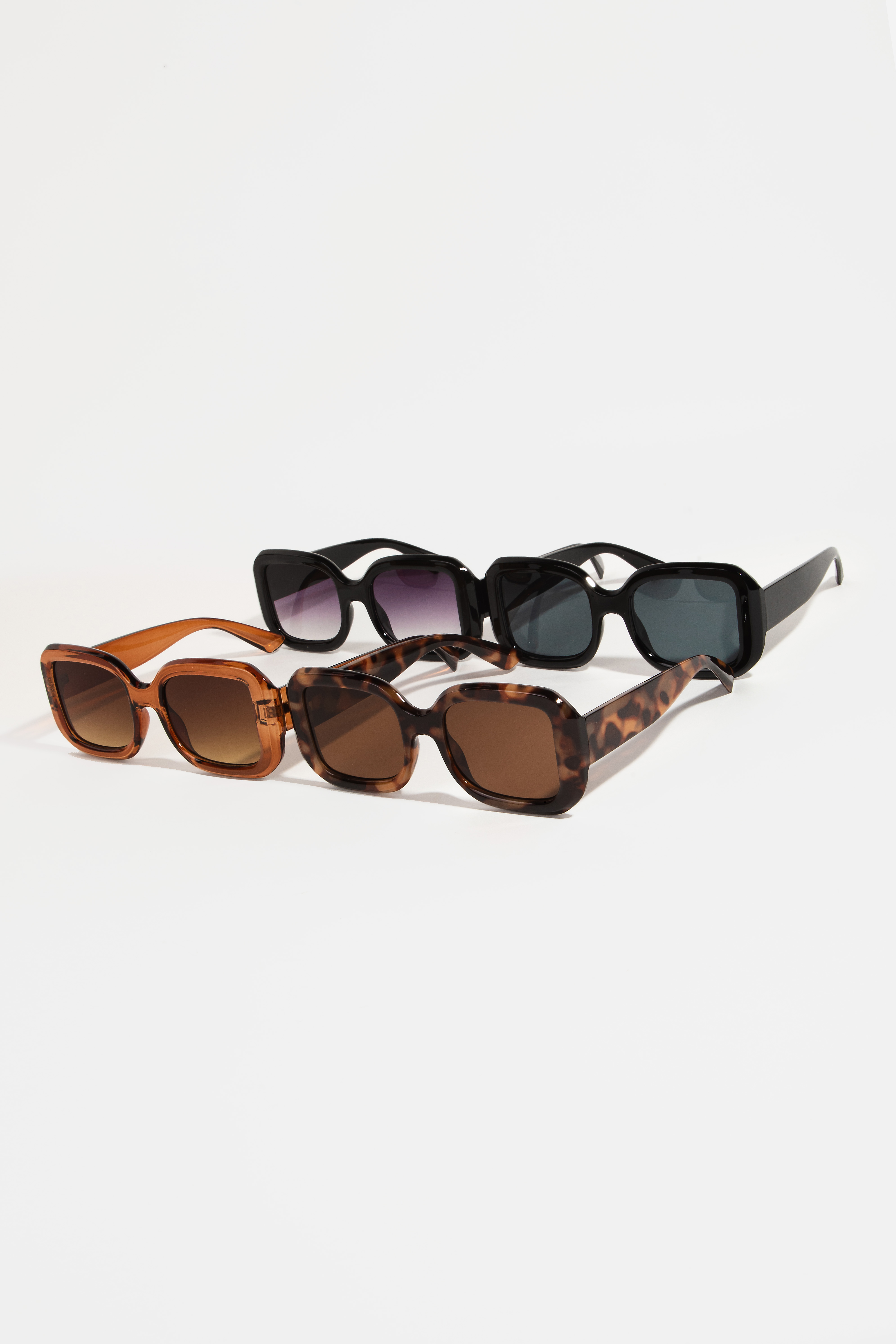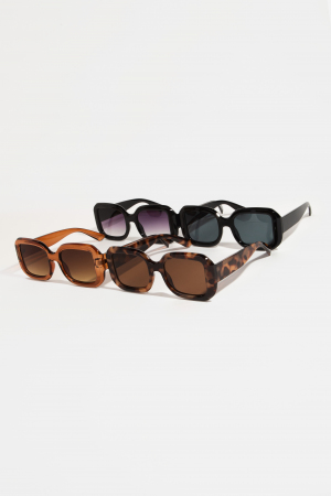 - This set of sunglasses brings a unique plastic frame rectangle sunglasses style. Immerse yourself in fashion finesse with this statement set of sunglasses.