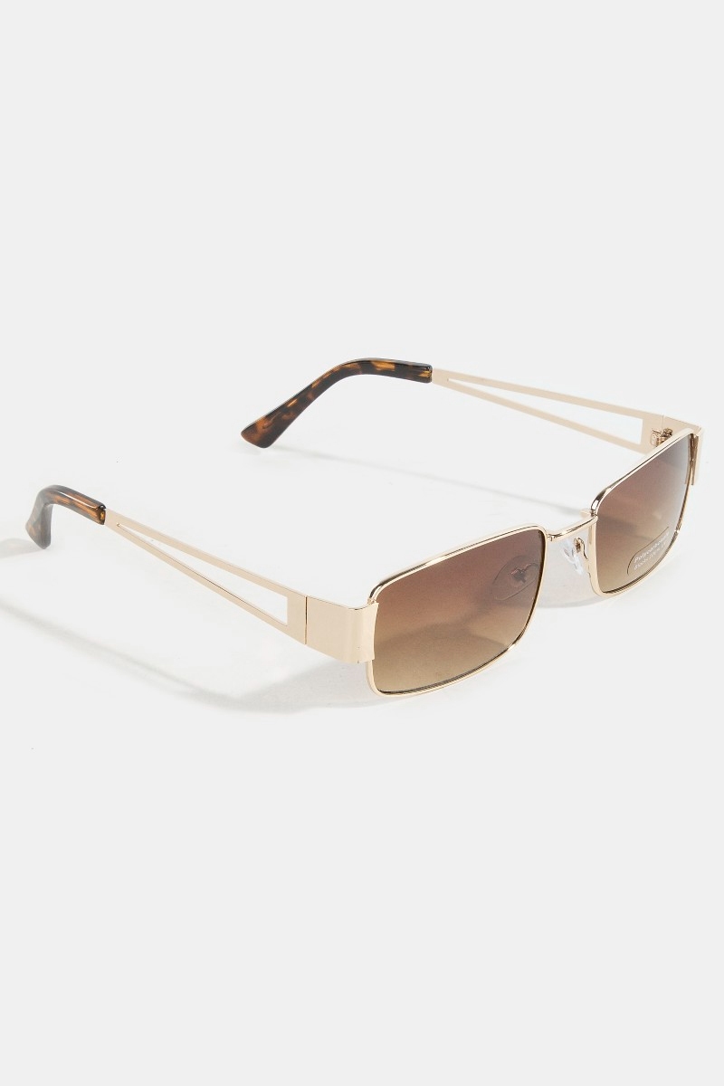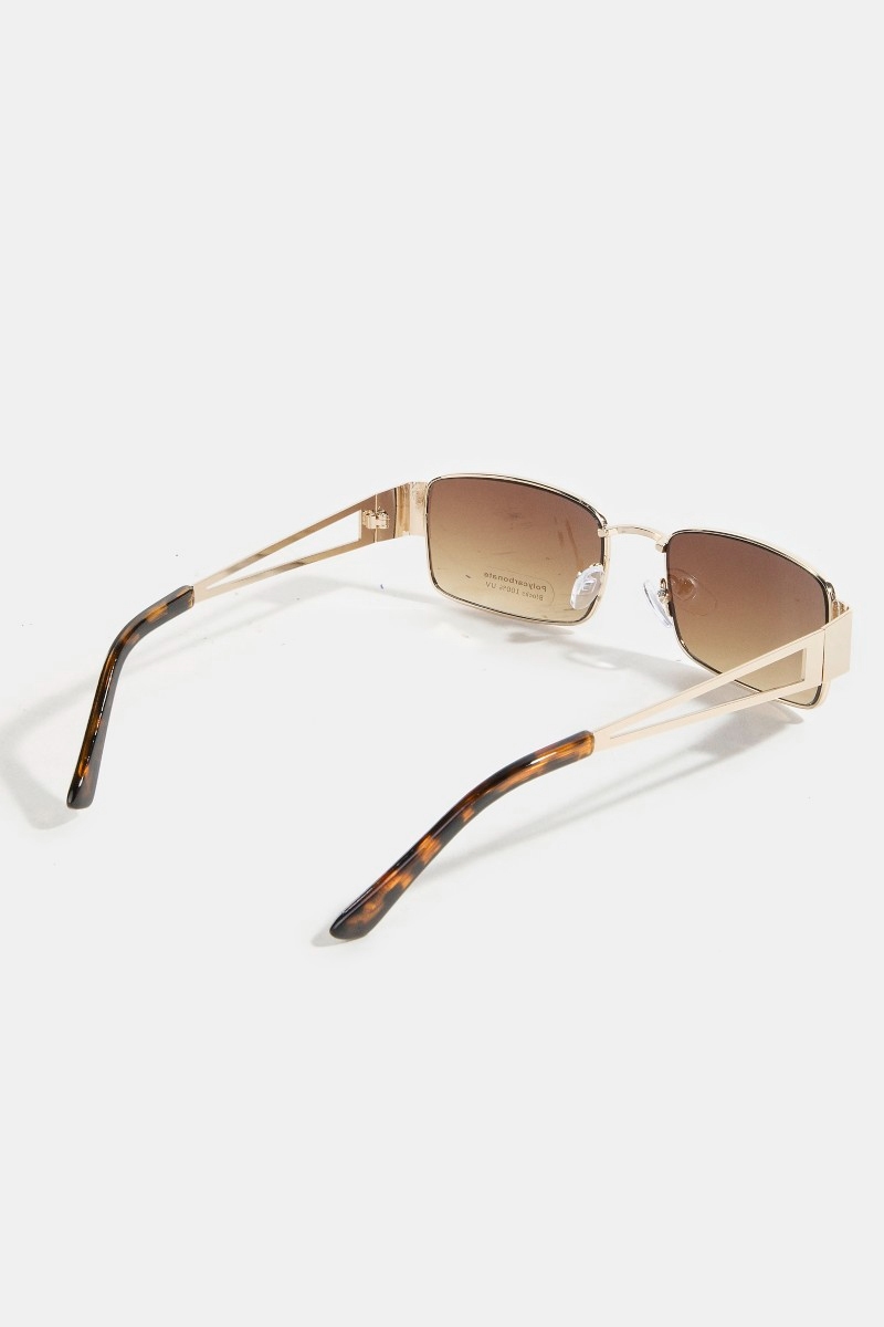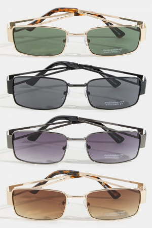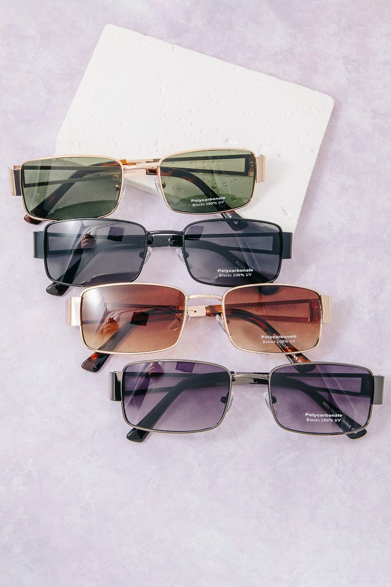 - This set of sunglasses features a fashionable metallic frame rectangle sunglasses set style. Savor the craftsmanship that goes beyond the ordinary, as this set of sunglasses effortlessly captivates attention.
