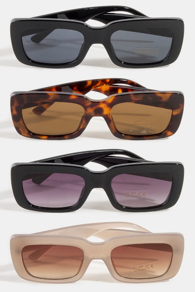 - This set of sunglasses showcases a timeless thick plastic frame rectangle sunglasses style. Indulge in the artistry of accessorizing with this unique piece.