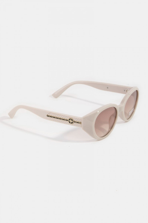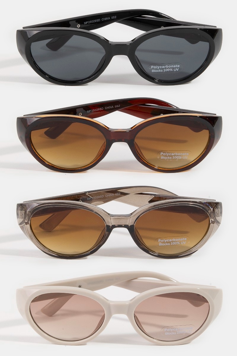 • This set of sunglasses displays a vibrant retro oval cat eye chunky frame sunglasses style. Revel in the intricate design that effortlessly distinguishes this set of sunglasses, making it a statement piece.